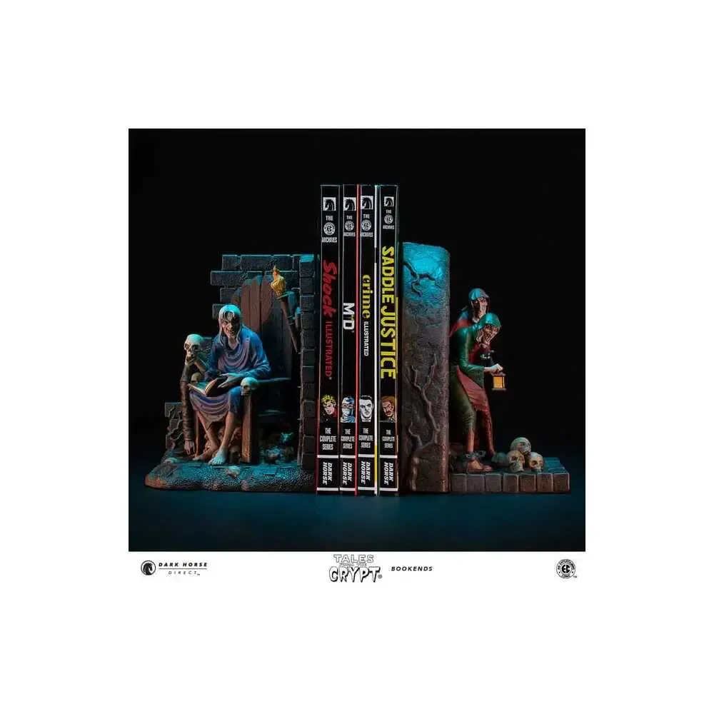 Erleben Sie Ihre EC-Comics-Nostalgie mit dem exklusiven neuen Buchstützen-Set von Dark Horse Direct! Auf der einen Seite ist der Crypt-Keeper bereit, eine neue Geschichte des Schreckens zu erzählen, auf der anderen halten der Vault-Keeper und die Alte Hexe die Toten in Schach. Von Chris Dahlberg fachmännisch modelliert, mit Prototyping und Bemalung von JW Productions, tauchen Sie mit diesen makellos gearbeiteten Buchstützen in die Gruselgeschichten ein, die Sie lieben!