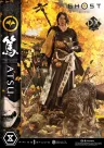 „In der Nacht, als meine Familie massakriert wurde, wurde ich zu einem solchen Geist.“ Eine rachsüchtige Kriegerin, die Ezo durchquert, dargestellt inmitten fallender Ginkgoblätter. Angesiedelt in Ezo im Jahr 1603, webt „Ghost of Yotei“ eine Geschichte von Rache und Erneuerung. Aus diesem Titel von Sucker Punch Productions, der 2025 große Aufmerksamkeit erregte, wird die Protagonistin Atsu in der Real Elite Masterline zum Leben erweckt. Atsu reist durch das weite nördliche Land, um die Yotei Sechs zu jagen, die ihre Familie getötet haben. Diese Statue im Maßstab 1:4 fängt ihre Doppelklingen ein – gehärtet durch eine unerschütterliche Gelassenheit, die in brutalen Prüfungen geschmiedet wurde, und angetrieben von einer Rache, die sie nicht auslöschen kann. Ihr würdevolles, aber schattiges Antlitz wird mit natürlich glänzenden Augen und fein detaillierter Hauttextur wiedergegeben. Ein abgenutzter Hut ist abnehmbar, und ein zusätzliches Kopfteil ist enthalten, um sie unmaskiert, ohne die Onryo-Maske, darzustellen. Von der Onryo-Rüstung, die das Gefühl von Seide vermittelt, bis zum Shamisen ihrer Mutter, dem Obi mit den Namen ihrer Feinde und dem Pelz aus Kunstfellmaterial – jedes Element strebt nach Realismus. Ein gebrochener Ginkgozweig. Eine in den Boden getriebene Klinge. Die speziell entworfene Basis, inspiriert von ihrem unbarmherzigen Leben, ist bis ins kleinste Detail ausgearbeitet, von wechselnden Blatttönen bis zu Unterschieden im Hamon. Das reiche Fell und der kräftige Körperbau des Wolfes sind mit einem beeindruckenden Gefühl von Wildheit vollendet. Sein Ausdruck, der sich niemandem beugt, scheint Atsus Seele widerzuspiegeln. Eine Reihe von Waffen ist ebenfalls vorbereitet – ausgewählt und ausgetauscht, wie es der Kampf erfordert. Zerschmettere einen Schild mit Crafted Defeat. Ziele aus der Ferne mit der Tanegashima. Fordere einen erfahrenen Gegner in einem Duell mit Lone Wolf heraus, der von ihrem Vater geschmiedeten Klinge. Lass deine Fantasie unzählige Szenen zum Leben erwecken. Eine rachsüchtige Kriegerin, realisiert in Farbe und Form mit kompromissloser Präsenz – ein völlig neues Kunstwerk für Fans der „Ghost“-Serie.