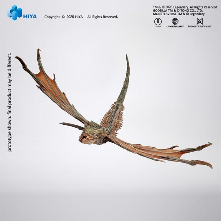 Nun ergänzt die Warbat-Actionfigur aus „Godzilla vs. Kong“ die EXQUISITE BASIC-Serie von Hiya Toys! Diese brandneue Warbat-Figur ist 55 cm lang, wurde mit viel Liebe zum Detail auf Basis der Original-CG-Daten gefertigt und gibt jeden Aspekt dieser fliegenden Superspecies aus der Hohlen Erde originalgetreu wieder. Sie verfügt über ein internes Mehrsegment-System in Kombination mit einer integrierten Drahtkonstruktion, wodurch sich die Flügel ausfahren und einklappen sowie der Körper beugen lassen, während die allgemeine Stabilität erhalten bleibt. Mit 2 Display-Ständern kannst du ikonische Momente aus dem Film nachstellen, in denen Warbat gleitet, Kreise zieht und Sturzangriffe ausführt.
