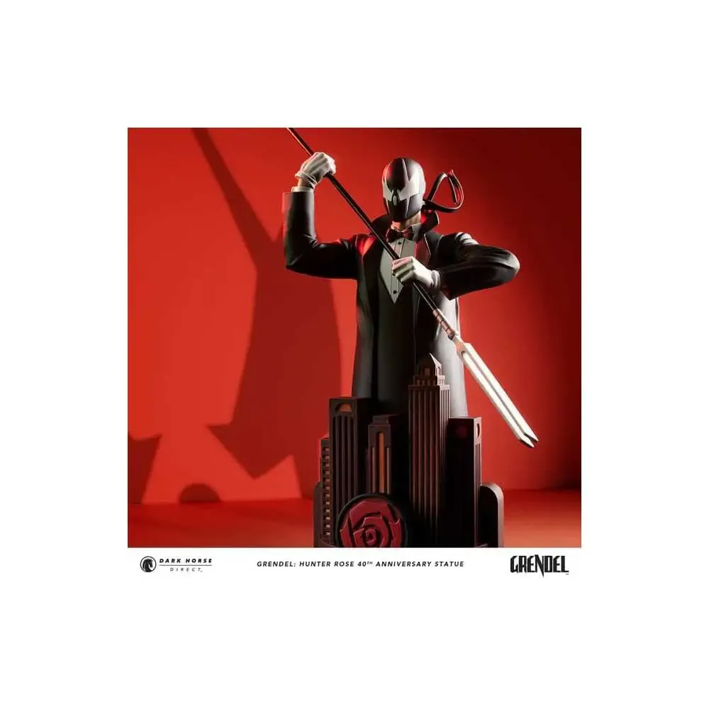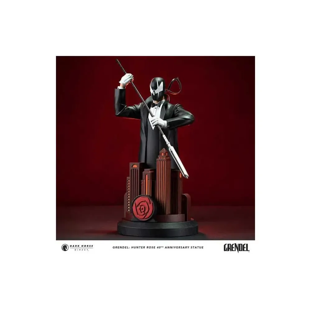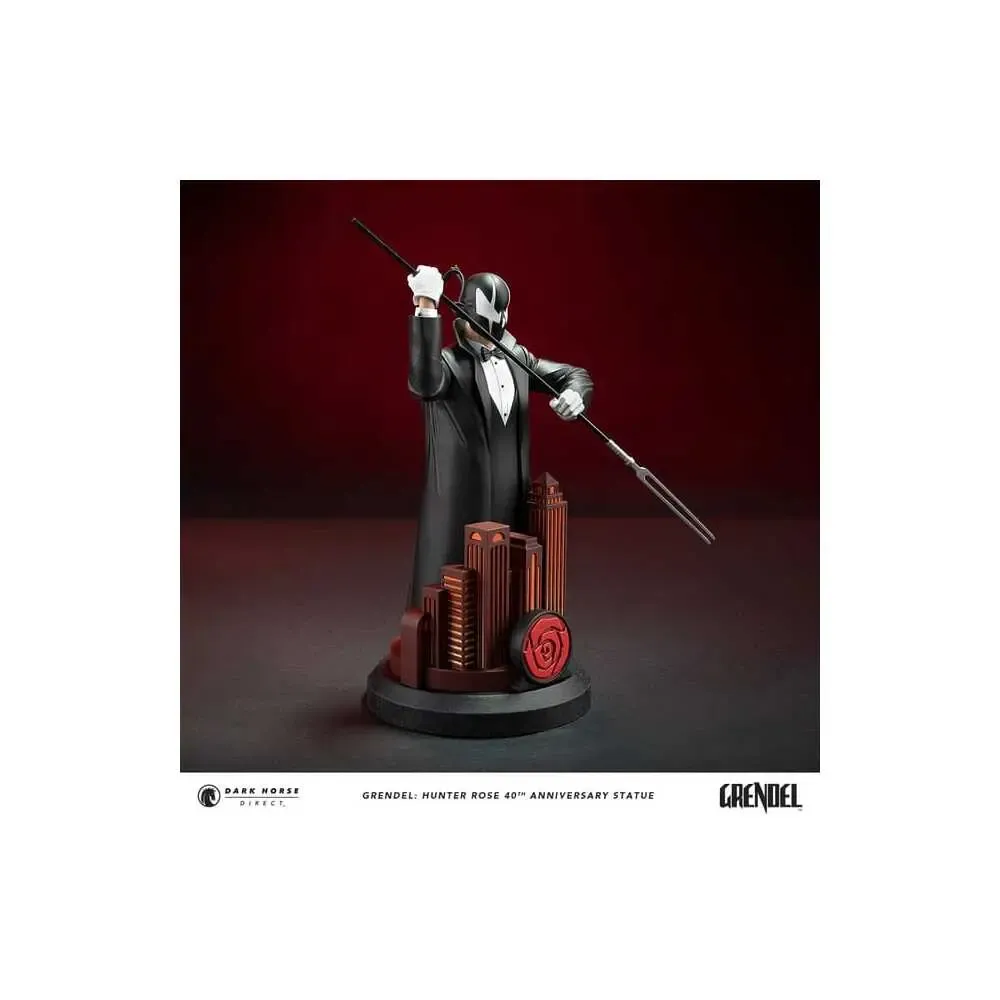 Dark Horse Direct ist stolz darauf, das Jubiläum von Matt Wagners Grendel mit der Hunter Rose 40th Anniversary Statue zu feiern! Der elegante, kostümierte Attentäter erhebt sich über die Stadt und ist mit seiner ikonischen, zweizinkigen Gabel zum Schlag bereit.