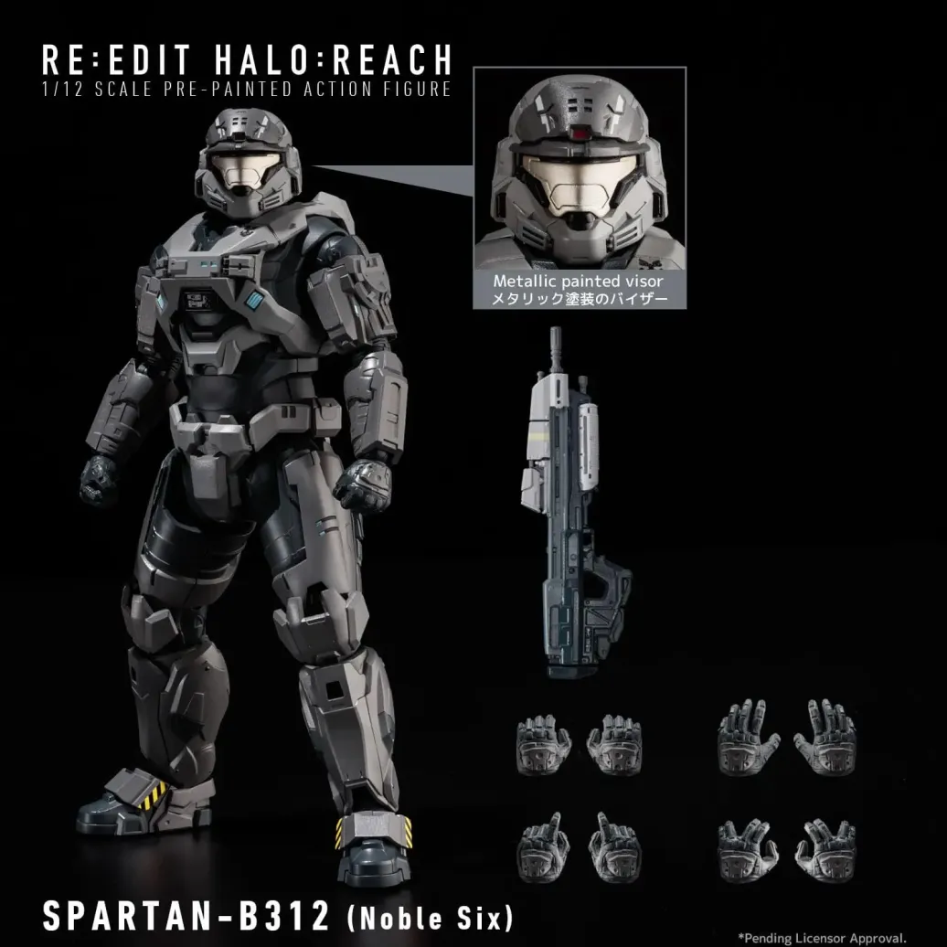 Zum Videospiel "Halo: Reach" kommt diese detailreiche Actionfigur im Maßstab 1/12. Sie ist ca. 18 cm groß und wird mit weiterem Zubehör und austauschbaren Teilen in einer bedruckten Box geliefert.