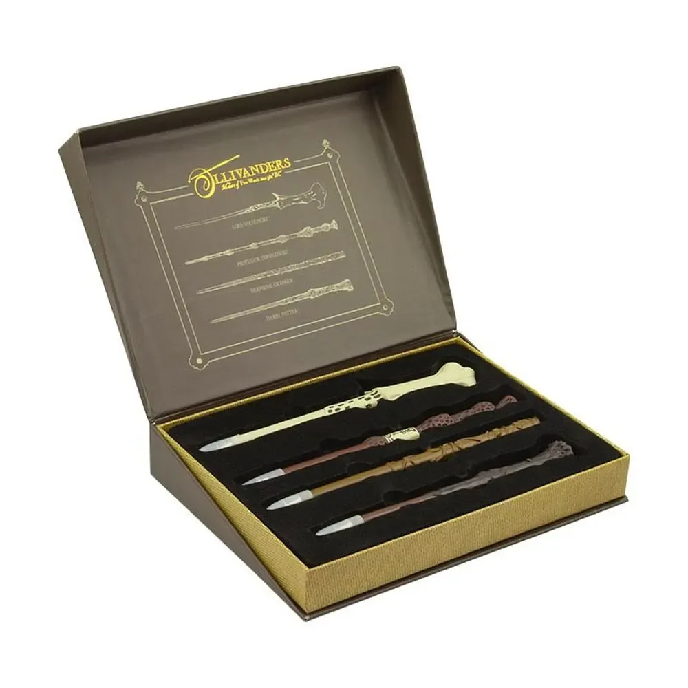 Zur Harry Potter Film Reihe kommt das schöne Set von 4 offiziell lizenzierten Kugelschreibern. Die Zauberstäbe kommen in einer schicken Geschenkbox, eine Nachbildung der originalen Zauberstab-Schachteln aus Ollivanders Zauberladen.