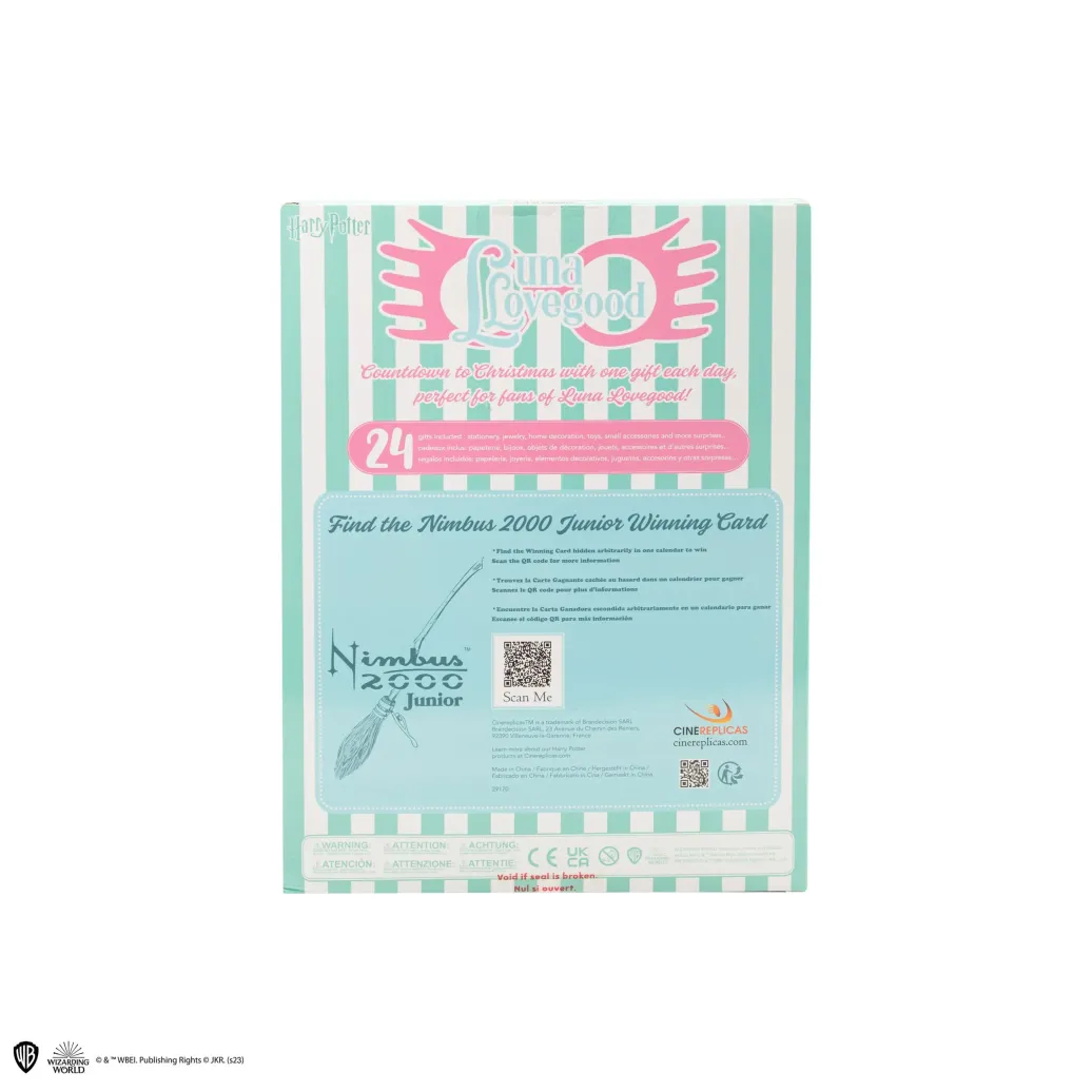 Offiziell lizenzierter Adventskalender mit 24 Geschenkartikeln zum Thema Harry Potter (Socken, Kordelzugbeutel, Augenmaske, Schlüsselanhänger, Textmarker, Ohrringe, Kamm, Bounce-Ball, Spiegel, Washi-Tape, Lentikular-Anstecker, Memoblock, Memo-Tab, Stempel, Lineal, Stift, Radiergummi, Anstecknadel, gewebter Aufnäher, Maßband, Untersetzer, Puzzles, Weihnachtsschmuck, Schaumstoffmagnet)