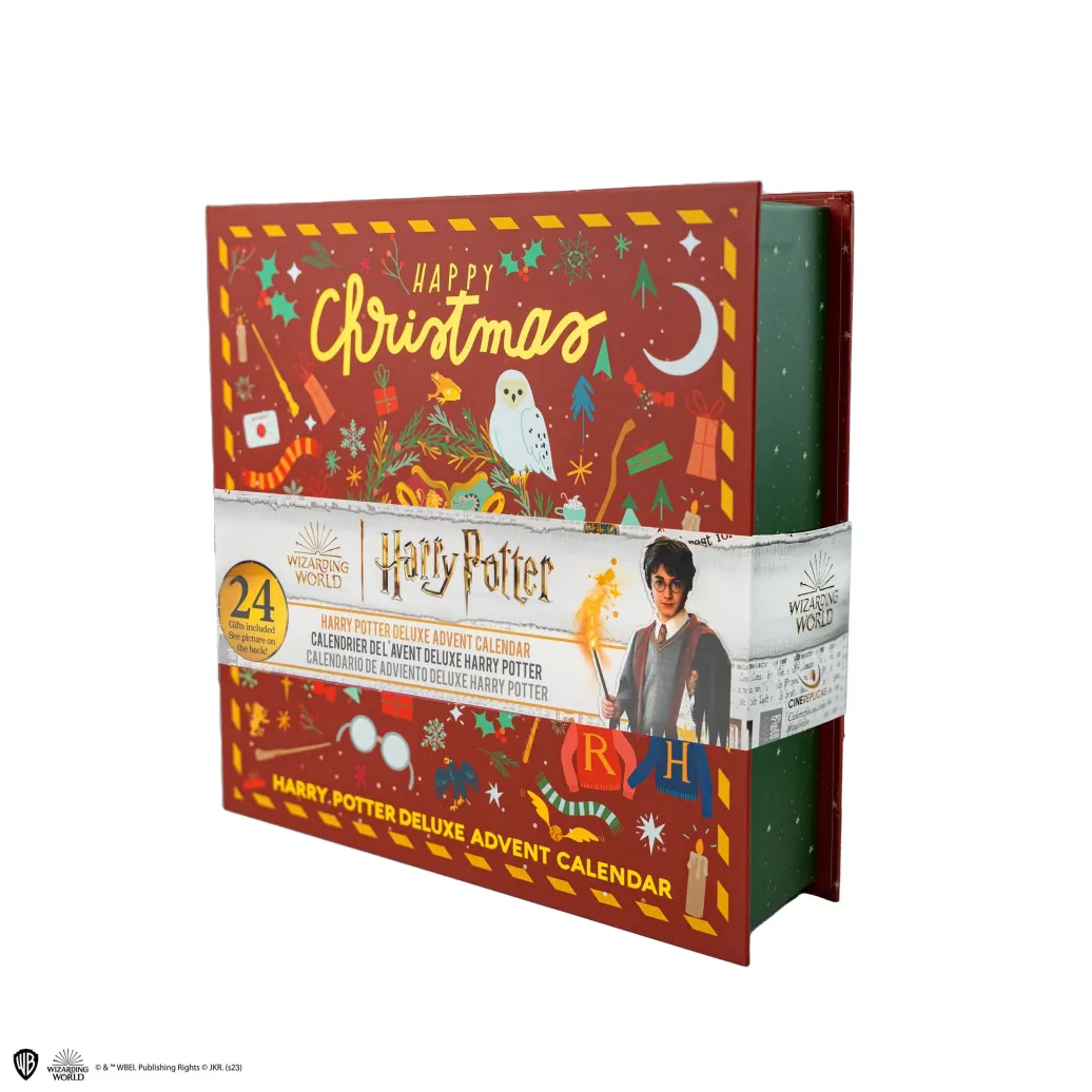 Offiziell lizenzierter Adventskalender mit 24 Geschenkartikeln zum Thema Harry Potter (Tragetasche, Anstecknadel, Halskette, Handschuhe, Yoyo, Socken, Umhängetasche, Armband, Untersetzer, Aufkleber, Lentikular-Anstecker, Ausstecher, Puzzle, Schlafmaske, Notizblock, Schlüsselanhänger, Kordelbeutel, Schaumstoffmagnet, Gomee, Zauberstabstift, Mylar-Ballon, wiederverwendbarer Strohhalm, Spiegel)