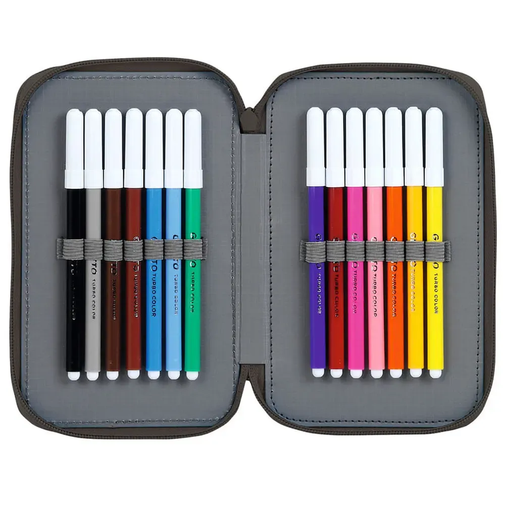 1x Radiergummi, 1x Spitzer, 1x Kugelschreiber, 1x Bleistift, 10 Buntstifte, 14 Filzstifte