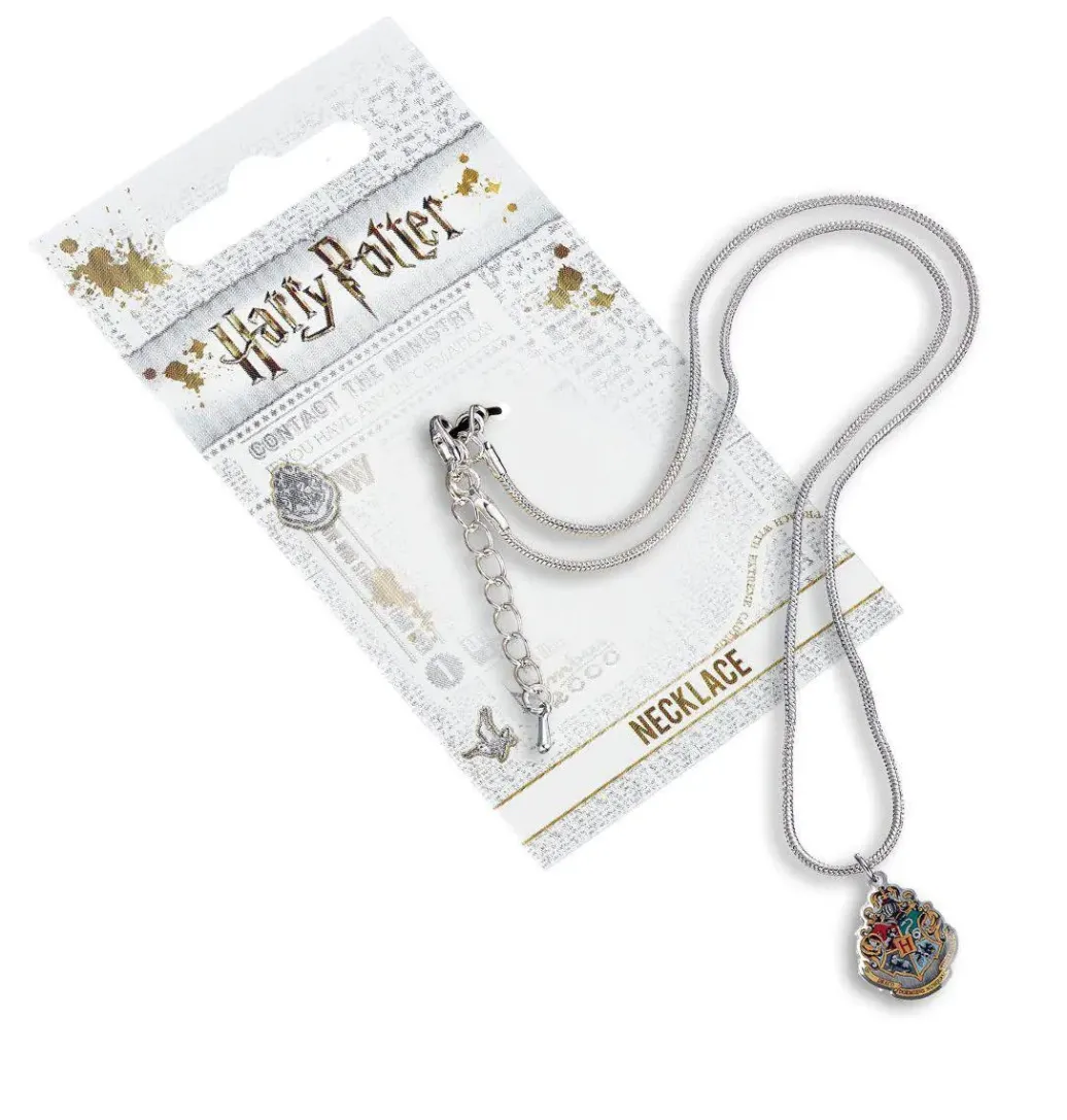 Zu Harry Potter kommt diese stylische Kette mit Anhänger aus versilbertem Metall. Die Kette ist ca. 47 cm lang, der Anhänger 20 x 25 mm groß.