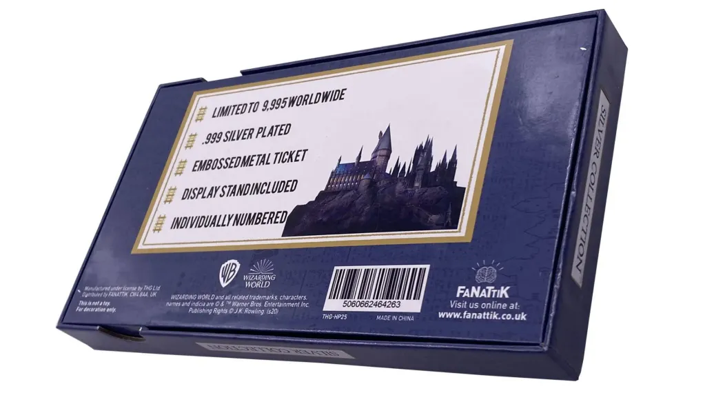 Aus dem Harry Potter-Universum kommt diese originalgetreue Nachbildung, gefertigt aus versilbertem Metall. Die Replik wird in einer bedruckten Fensterbox geliefert.