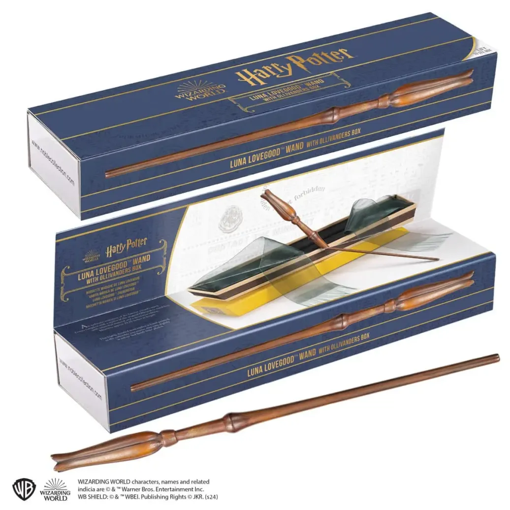 Diese Nachbildung des Zauberstabs der Ravenclaw-Schülerin Luna Lovegood ist aus handbemaltem Harz gefertigt. Der Zauberstab ist ca. 34,5 cm (13,5 Zoll) lang und seit kurzem in einer Ollivanders-Box erhältlich.