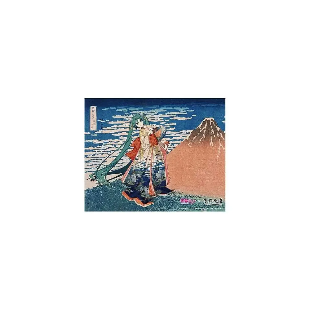 Dies ist ein besonderes Kunstwerk, das die Welt der „36 Ansichten des Berges Fuji“ des Ukiyo-e-Meisters Katsushika Hokusai aus der Edo-Zeit mit einer Originalillustration von Hatsune Miku verbindet, die vom beliebten Illustrator iXima neu gezeichnet wurde. Katsushika Hokusais Meisterwerk-Serie „36 Ansichten des Berges Fuji“, die bis heute die Welt fasziniert, trifft auf die moderne Ikone Hatsune Miku. Diese einzigartige Zusammenarbeit, illustriert von iXima, wurde als Leinwandkunstwerk zum Leben erweckt, das die Textur und Präsenz eines echten Kunstwerks einfängt.