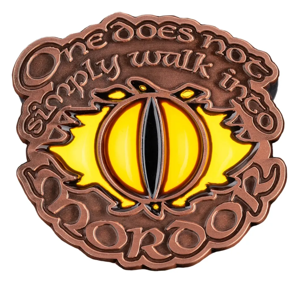 Erhellen Sie Ihre Sammlung mit dieser faszinierenden Anstecknadel, die das unheilvolle Auge von Sauron und Boromirs unvergessliche Zeile zeigt. Das Auge besteht aus durchscheinendem Material und leuchtet, wenn es von hinten beleuchtet wird, wodurch die allgegenwärtige Präsenz von Sauron eingefangen wird.