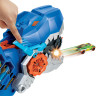 Der Hot Wheels City Ultimative Transporter kann mehr als 20 Autos im Maßstab 1:64 verschlingen und in seinem Inneren aufbewahren. Außerdem verwandelt er sich in einen tobenden, stampfenden T-Rex mit Rennstrecke auf dem Rücken! Im Transportermodus verschlingt er beim Ziehen des Griffs alle Autos im Maßstab 1:64, die ihm in den Weg kommen. Durch Herabsenken des Schwanzes verwandelt er sich in einen Robo T-Rex mit Lichtern und Geräuschen sowie in eine zweispurige Rennstrecke. Die Autos können vom Maul aus ins Rennen starten. Enthält zwei Hot Wheels Autos im Maßstab 1:64. Abweichungen in Farbe und Gestaltung vorbehalten.