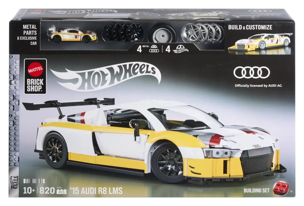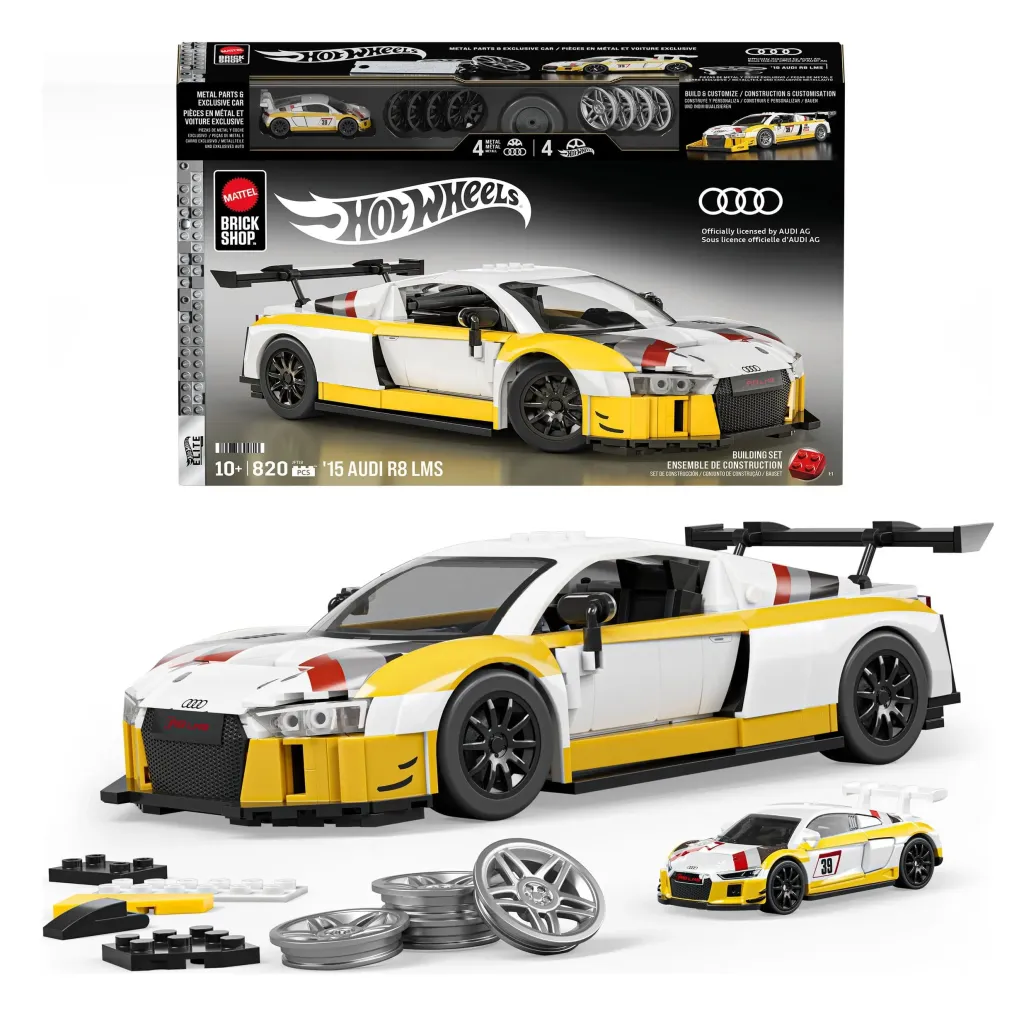 Anschnallen und auf zum rasanten Abenteuer mit dem ’15 Audi R8 LMS von Mattel Brick Shop im Maßstab 1:16 zum Zusammenbauen. Dieses detailreiche und authentische Set umfasst Aufkleber zur individuellen Gestaltung, 2 Sets Radverkleidungen, ein Signature-Nummernschild aus Metall sowie ein exklusives passendes Metallauto. Kombiniert mit allen anderen Autos der Elite Serie entsteht eine Sammlung, die sich sehen lassen kann.