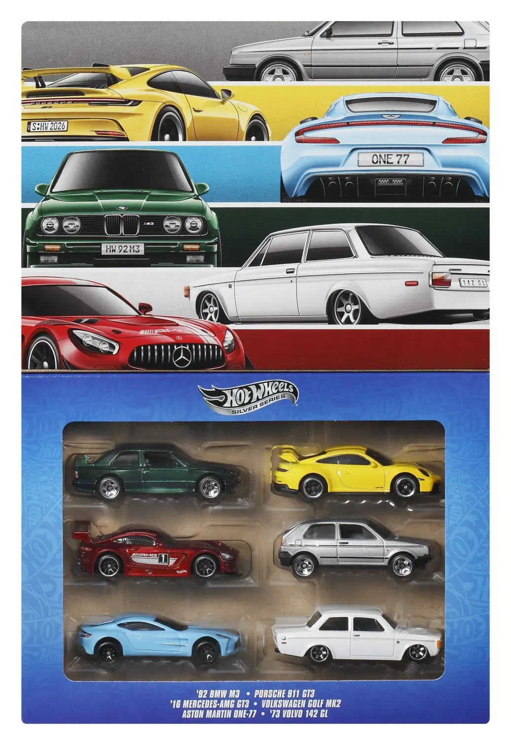 Eleganz trifft auf Geschwindigkeit im Hot Wheels Silver Series 6er-Pack 'Euro Style'! Diese Sammlung feiert ikonische europäische Fahrzeuge in hochwertiger Die-Cast Ausführung im Maßstab 1:64. Jedes Modell glänzt im speziellen Design der Silver Series und macht dieses Set zu einem Highlight für Sammler und Fans von europäischen Sport- und Luxusautos.