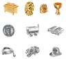 Enthält Spielplan, 6 Spielfiguren, 4 goldene Artefakte, 4 Artefaktkarten, 28 Besitzrechtkarten, 16 Jagd & Fallen-Karten, 16 Reichtum & Ruhm-Karten, 32 Spinnen, 12 Schlangen, 2 Würfel, 1 Satz Spielgeld und Spielanleitung.
