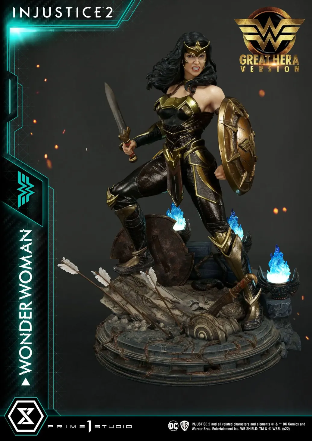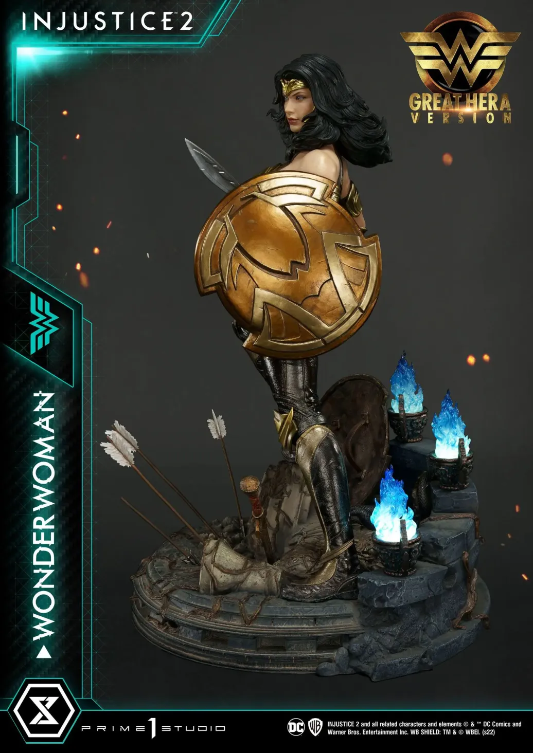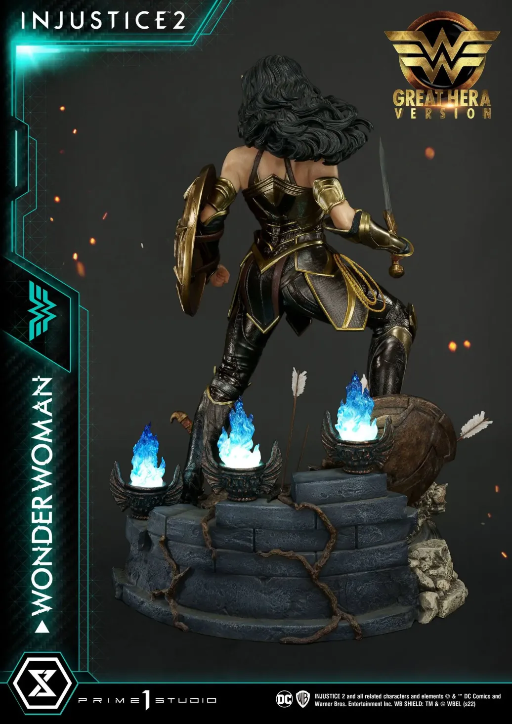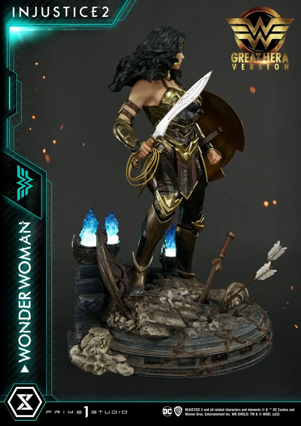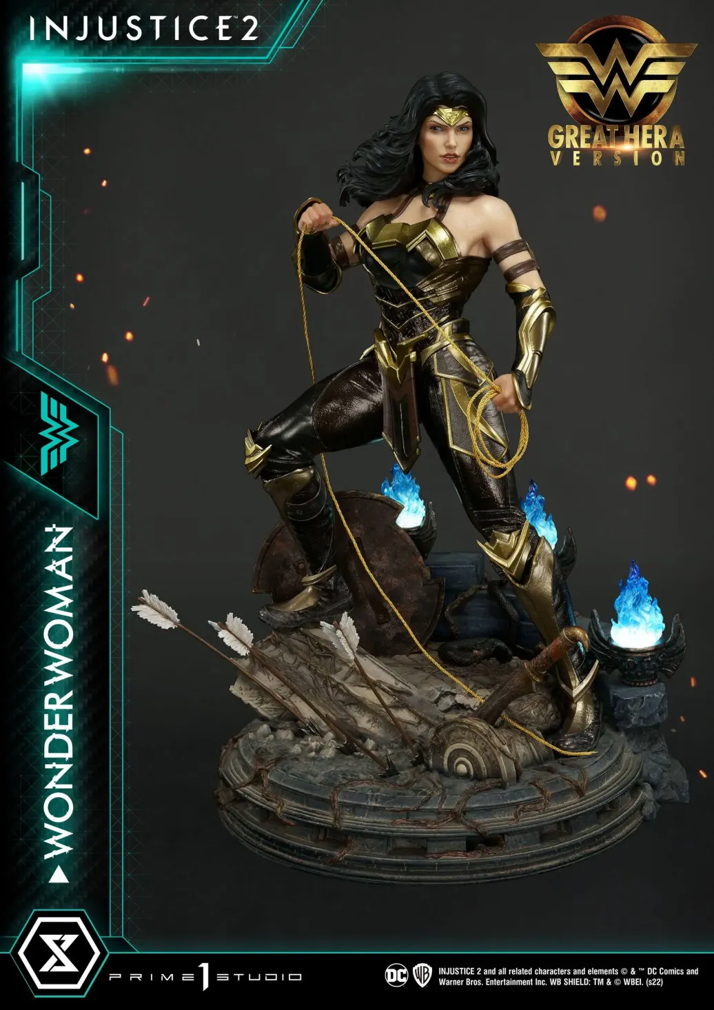 Das limitierte Sammlerstück wird mit austauschbaren Armen, Köpfen, Schilder, ansprechender Base mit LED-Leuchtfunktion und dem Lasso der Wahrheit in einer bedruckten Box geliefert.