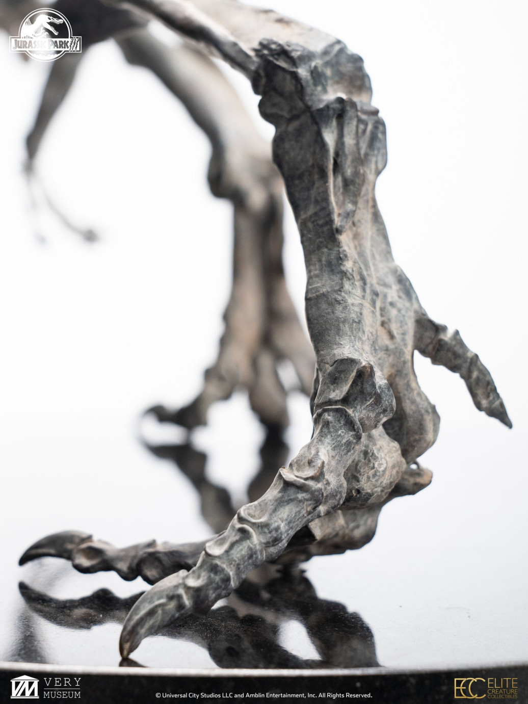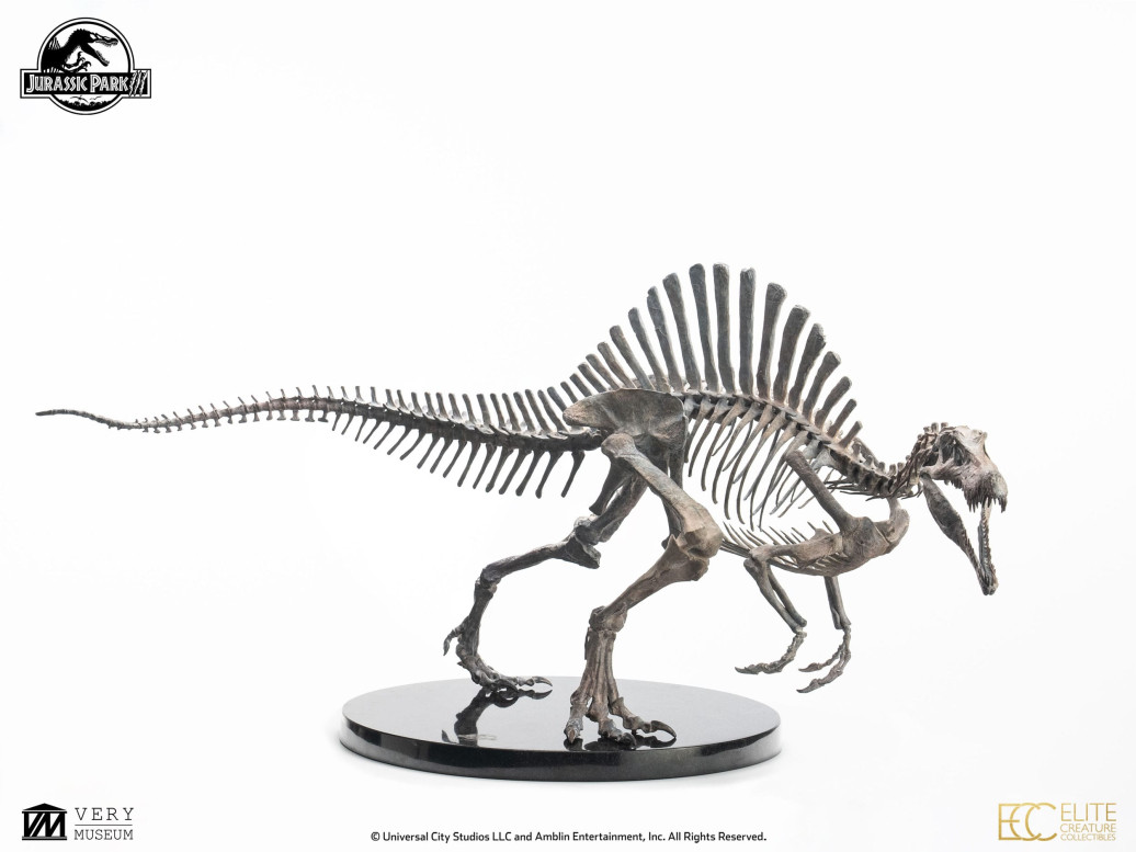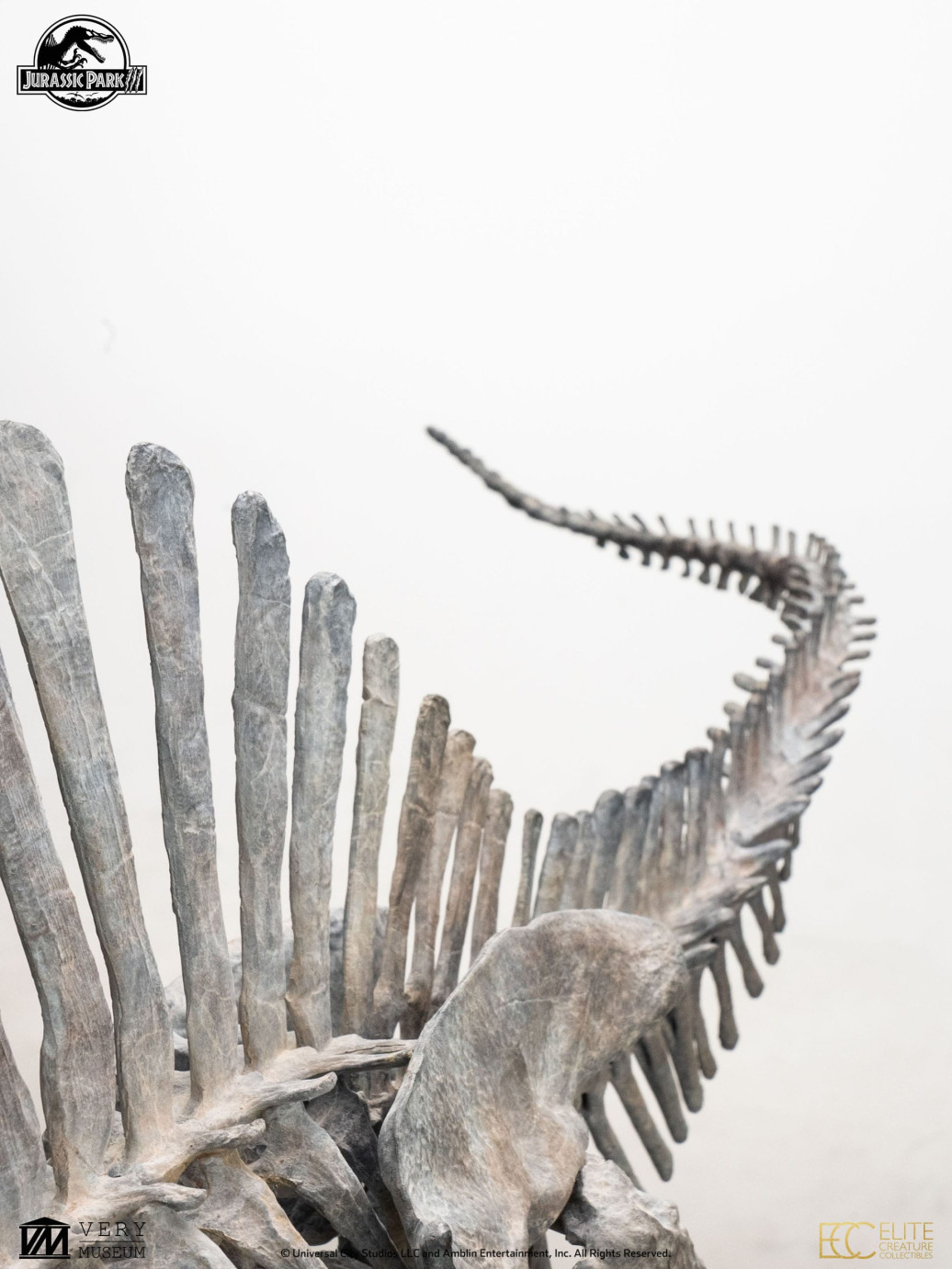 Elite Creature freut sich, unser Spinosaurus Fossil Skeleton Bronze vorstellen zu können. Mit praktischem Zugang zu Museumssammlungen von Spinosaurus-Fossilabgüssen hat ILM-Künstler Bitan das Spinosaurus-Skelett originalgetreu nachgebildet, und zwar nicht nur auf der Grundlage vorhandener fossiler Details, sondern auch in Übereinstimmung mit dem anatomischen Design aus dem Film.