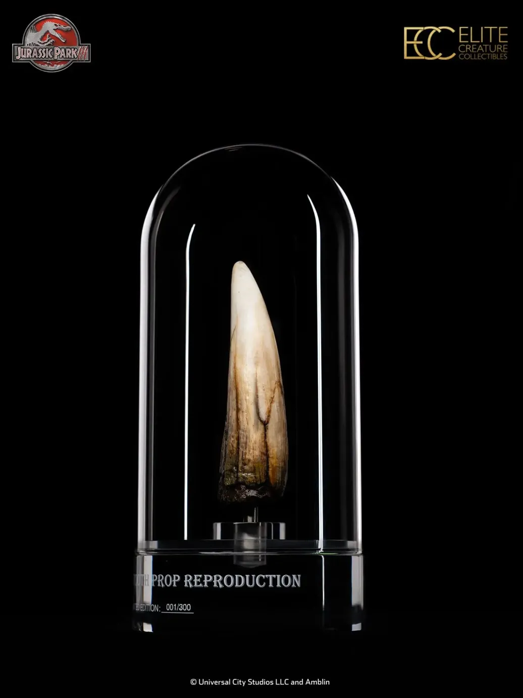 Elite Creature Collectibles ist stolz darauf, diese Nachbildung eines Spinosaurus-Zahns für Jurassic Park-Fans und Sammler präsentieren zu dürfen. Der Prototyp des Zahns wurde vom legendären Spezialeffektkünstler Rob Hinderstein weiter verfeinert, der zusätzliche Risse und Kratzer hinzufügte, um die Bildschirmgenauigkeit zu verbessern.
