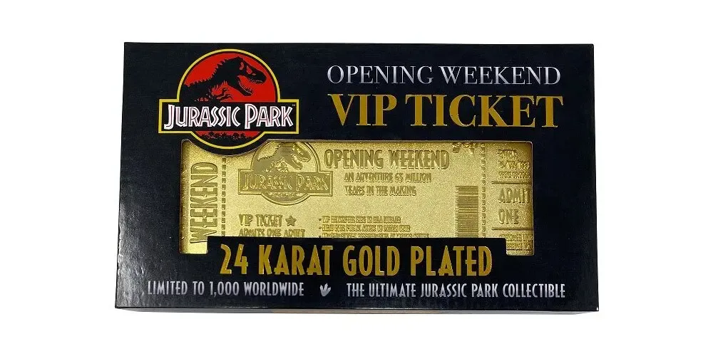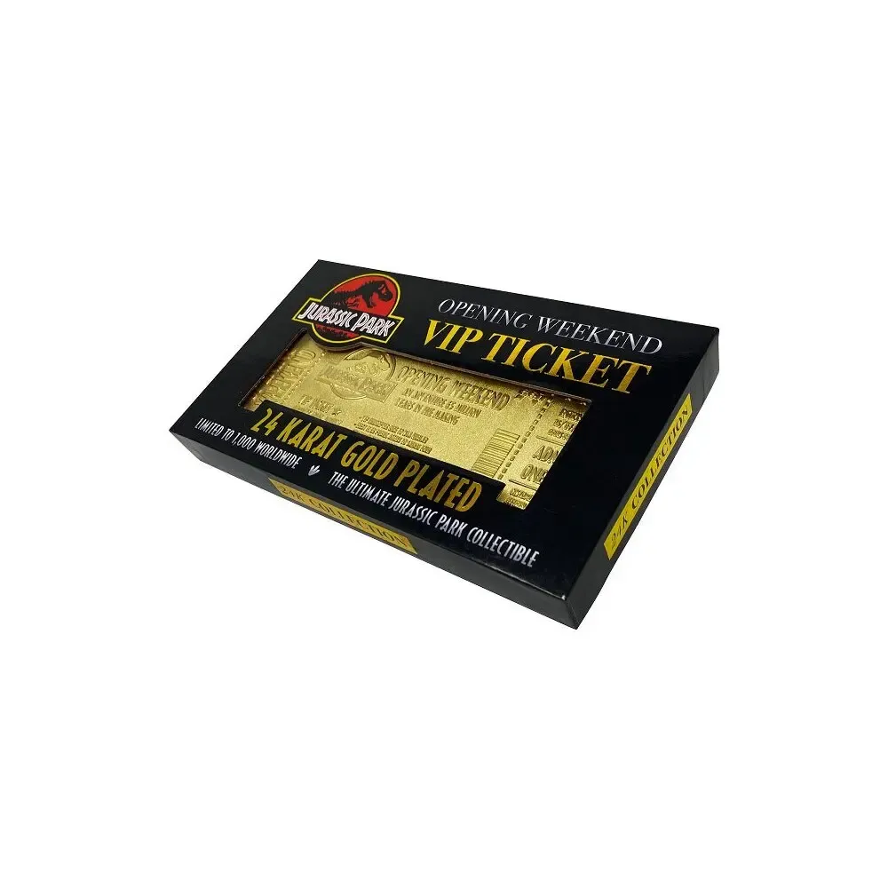 Zum Abenteuerfilm Jurassic Park kommt diese originalgetreue Nachbildung, gefertigt aus vergoldetem Metall. Die Replik wird in einer bedruckten Fensterbox geliefert. Größe: 16 x 5 x 0,5 cm