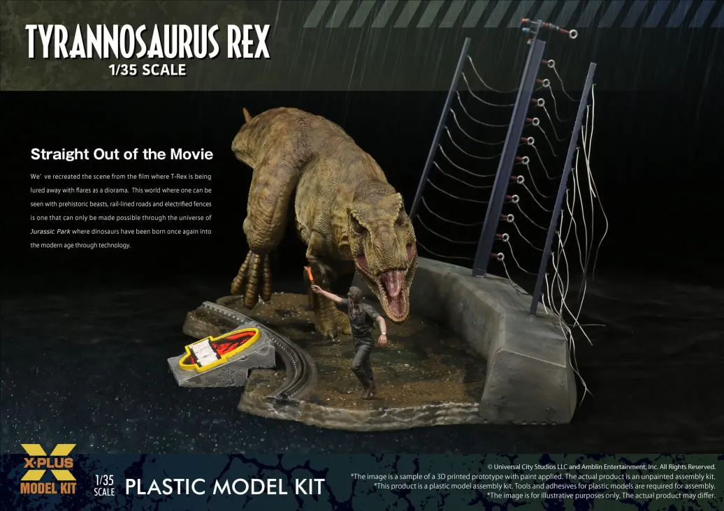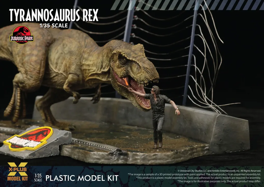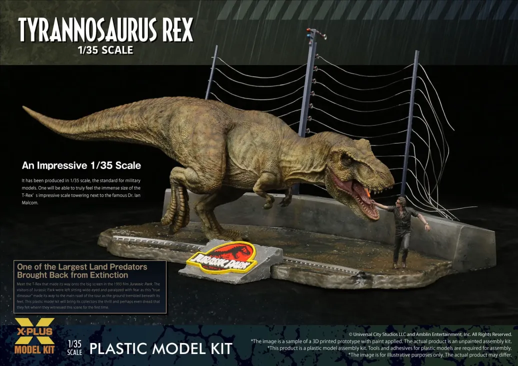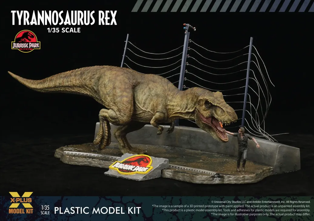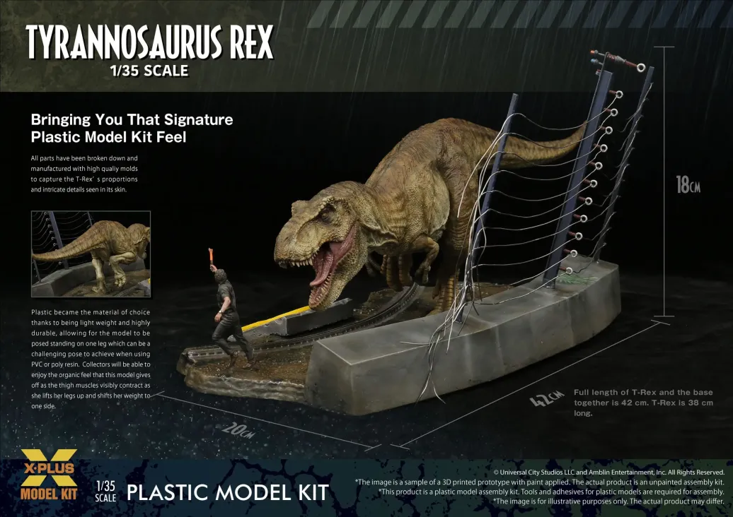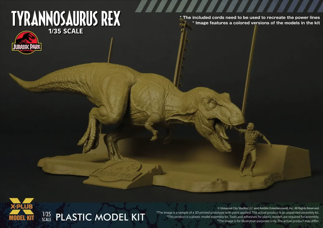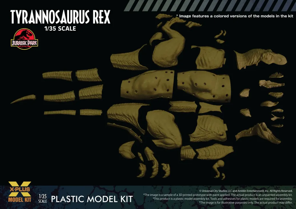 Zu 'Jurassic Park' kommt dieses Model Kit des Tyrannosaurus Rex. kommt dieses unbemalte Model Kit. Zusammengebaut ist die Figur ca. 42 cm groß.