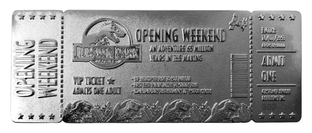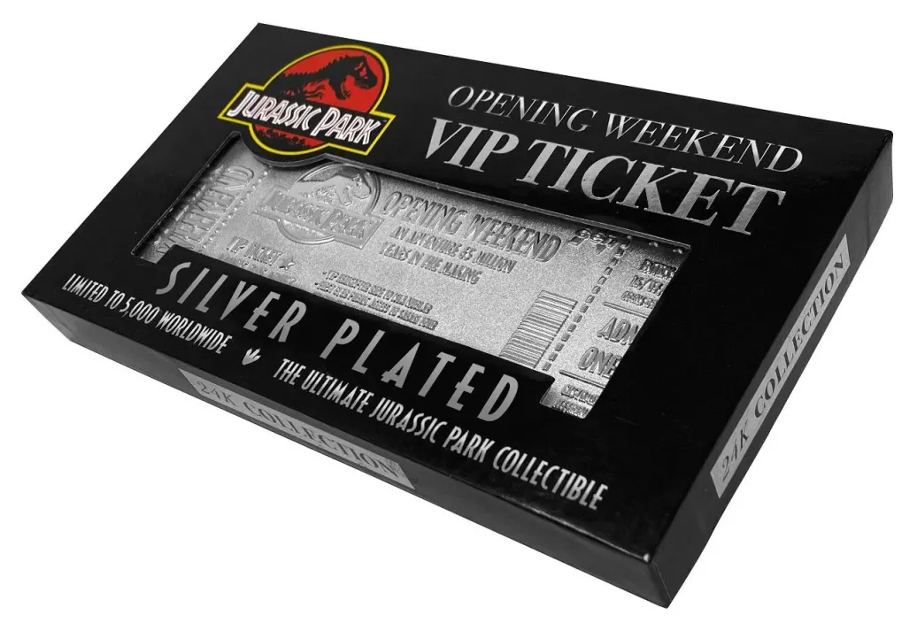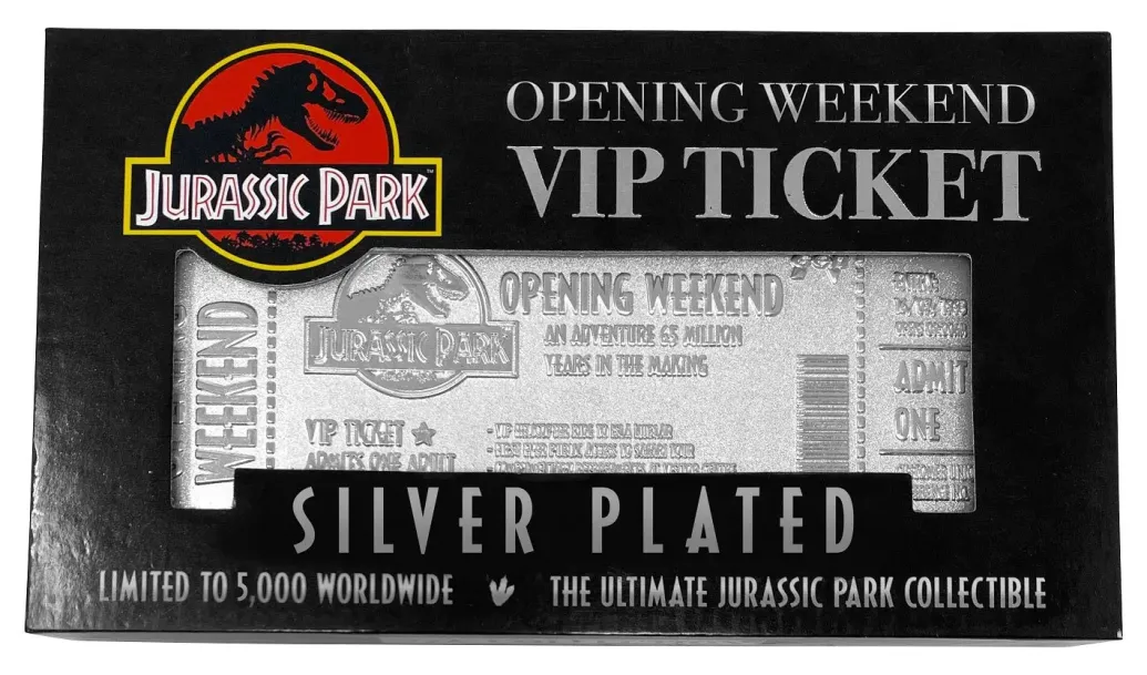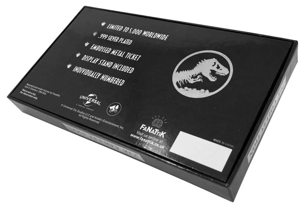 Zum Abenteuerfilm Jurassic Park kommt diese originalgetreue Nachbildung, gefertigt aus versilbertem Metall. Die Replik wird in einer bedruckten Fensterbox geliefert. Größe: 16 x 5 x 0,5 cm