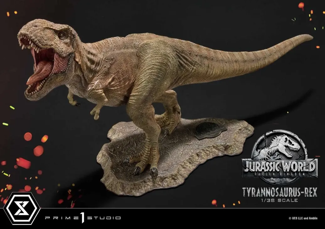„Diese Kreaturen waren schon vor uns hier. Und wenn wir nicht aufpassen, werden sie auch nach uns noch hier sein … Wir sind in eine neue Ära eingetreten. Willkommen in Jurassic World.“ – Dr. Ian Malcolm Prime 1 Studio freut sich riesig, den König der Dinosaurier in der Prime Collectible Figure Series zu präsentieren: den Tyrannosaurus Rex im Maßstab 1:38 aus „Jurassic World: Fallen Kingdom“! Der 2018 erschienene Film „Jurassic World: Fallen Kingdom“ hat Dinosaurier in die Welt entlassen, und Prime 1 Studio entlässt unsere saurierartigen Kreationen in Ihre Welt! Weiden Sie Ihre Augen am Tyrannosaurus Rex! Von unseren unglaublich kunstvollen Bildhauern mitten im Brüllen eingefangen, präsentiert sich dieser T-Rex in seiner ganzen prähistorischen Pracht! Selbst in diesem kleineren Maßstab (23 cm hoch) ist die präzise Gestaltung der Haut und Anatomie des T-Rex anspruchsvoll und exquisit. Jede Falte, jede Unebenheit und jede seiner charakteristischen Narben ist sorgfältig platziert, um die Persönlichkeit, Haltung und den Charakter des Tieres zur Geltung zu bringen. Von den kalten, gelben Augen bis hin zu den scharfen, feuchten Zähnen ... unsere talentierten Maler haben diesen T-Rex so originalgetreu wie möglich nachgebildet. Wenn Sie genau hinschauen, erkennen Sie die subtilen Schattierungen und Streifen dieses T-Rex, die seine natürliche Färbung gemäß dem Film perfekt wiedergeben. Um die Pracht und Tragbarkeit dieser Schreckens-Echse zu unterstreichen, haben wir sie mit einem minimalistischen Felssockel ausgestattet, damit der T-Rex als Hauptattraktion zur Geltung kommt. Zu guter Letzt haben wir hinter seinen Füßen noch eine schöne „Jurassic World“-Plakette angebracht. Die handliche Größe und der attraktive Preis des „Jurassic World: Fallen Kingdom“ Tyrannosaurus Rex machen ihn nicht nur zu einem begehrten Sammlerstück, sondern auch zu einem großartigen Einstieg in das Sammeln der gesamten Serie! Warten Sie nicht, sichern Sie sich noch heute Ihr Exemplar!