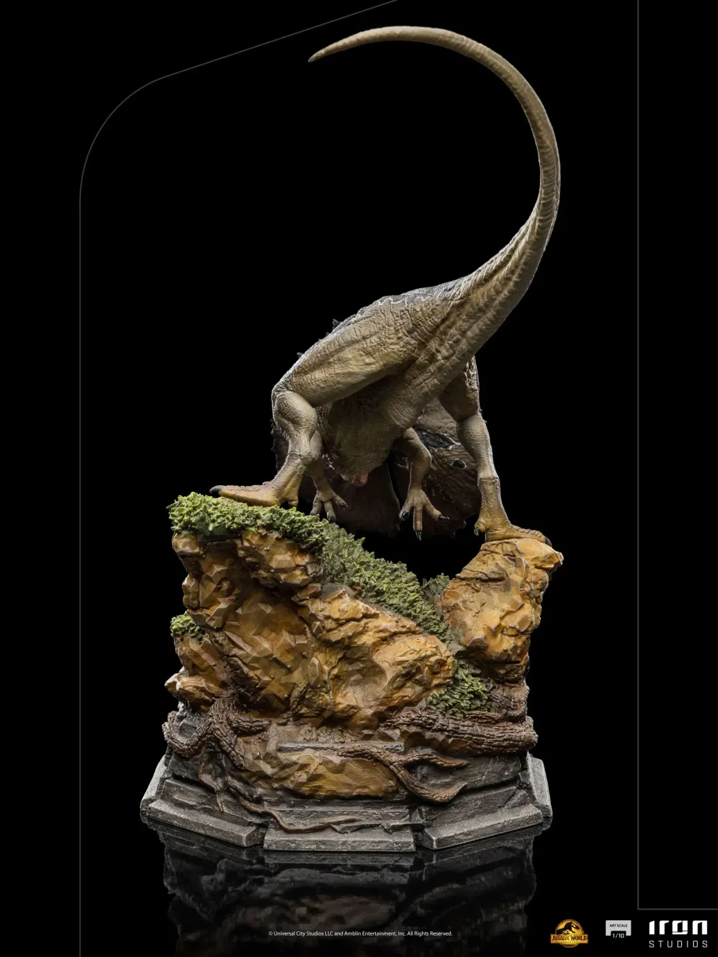 Zum Film "Jurassic World Ein neues Zeitalter" kommt diese offiziell lizenzierte, handbemalte Statue aus Resin. Die im Maßstab 1/10 gehaltene Statue ist ca. 13 x 12 x 20 cm groß.