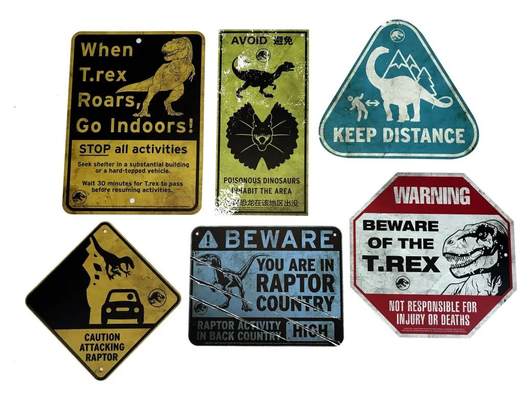 Zu "Jurassic World" kommt dieses Set mit qualitativ hochwertigen Schildern aus Metall.