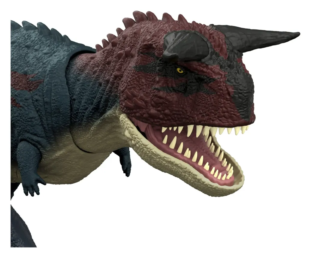 Dieses Jurassic World Charge 'N Chomp Carnotaurus-Dinosaurierspielzeug kann nicht nur aufregende Lauf- und Kaubewegungen, sondern auch Brüllgeräusche machen. Die mit mehreren Gelenken ausgestatteten Beine machen realistische Laufbewegungen, wenn sie mit einem Knopf am Schwanzansatz aktiviert werden. Im Laufen ist der Dino im Angriffsmodus, die Beißbewegungen dienen der Verteidigung. Dieses Dinosaurierspielzeug mit vielen Funktionen freut sich auf Kampf-Action. Durch Scannen des Tracking-Codes auf dem Fuß des Dinosauriers in der kostenlosen Jurassic World Play App mit einem kompatiblen Smart-Gerät (Android oder iOS, nicht enthalten) werden eine digitale Version des Dinosauriers sowie ein lustiges Spiel freigeschaltet, bei dem sich verschiedene Fahrzeuge an Land, in der Luft und im Wasser ein Rennen liefern. Perfekt für Dinosaurierfans ab 4 Jahren. Es sind mehrere Dinosaurierarten jeweils separat erhältlich. Abweichungen in Farbe und Gestaltung vorbehalten.