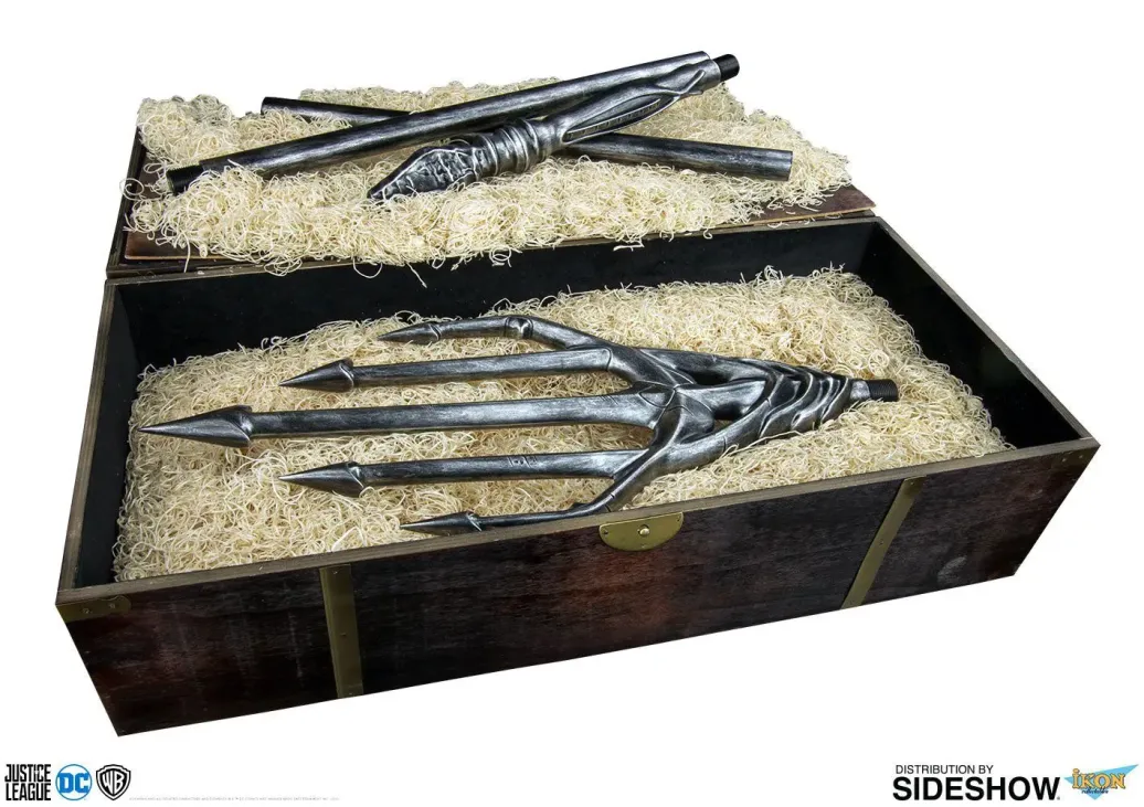 Zum DC-Blockbuster Justice League kommt diese originalgetreue Nachbildung von Aquamans Dreizack aus Metall und Fiberglas. Die Replik ist ca. 212 cm lang und wird in seine vier Einzelteile zerlegt in einer schicken Holzkiste geliefert.