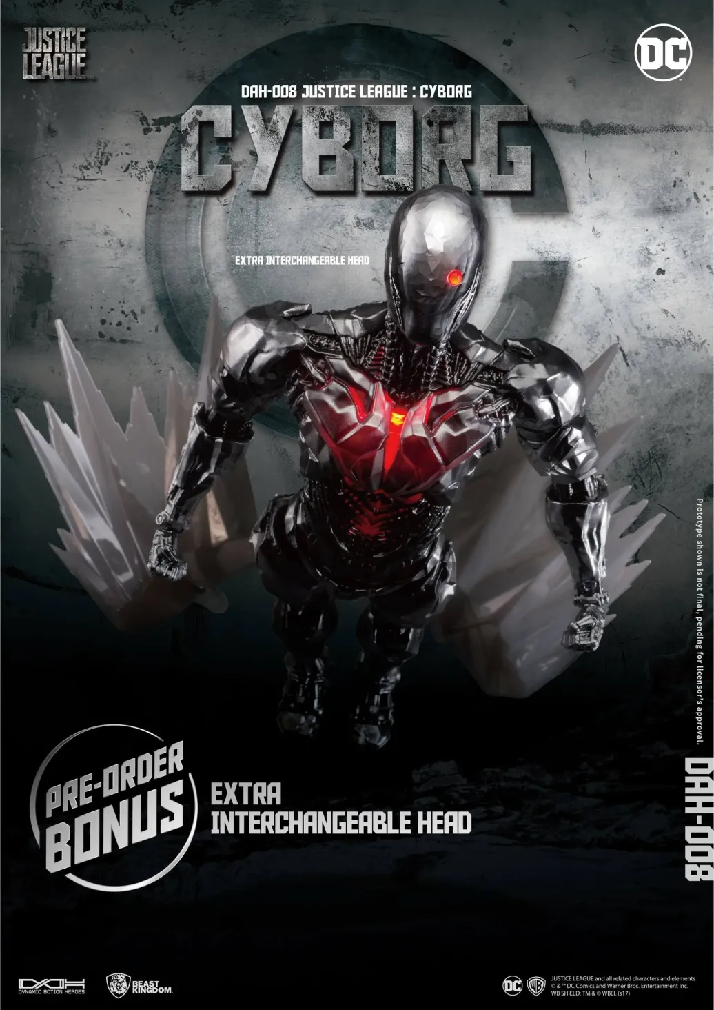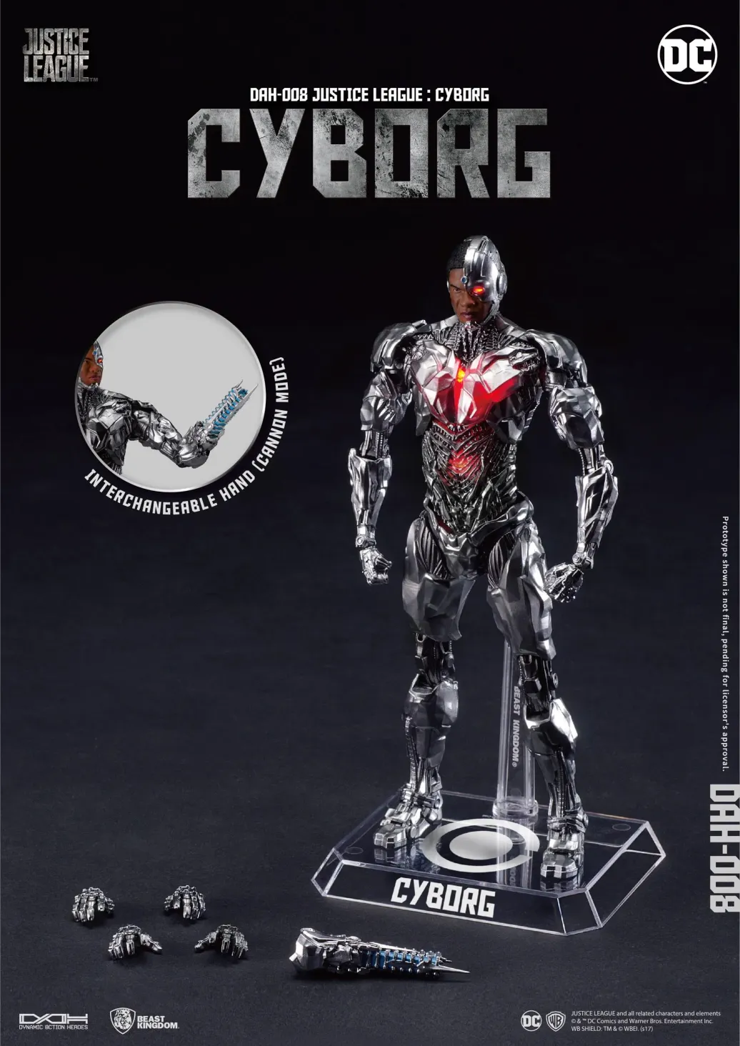 Zum DC Blockbuster Justice League kommt diese großartige Cyborg Actionfigur im Maßstab 1:9 aus der Dynamic 8ction Heroes Serie von Beast Kingdom Toys. Sie ist ca. 21 cm groß und wird mit weiteren Austausch- und Zubehörteilen in einer bedruckten Box geliefert.