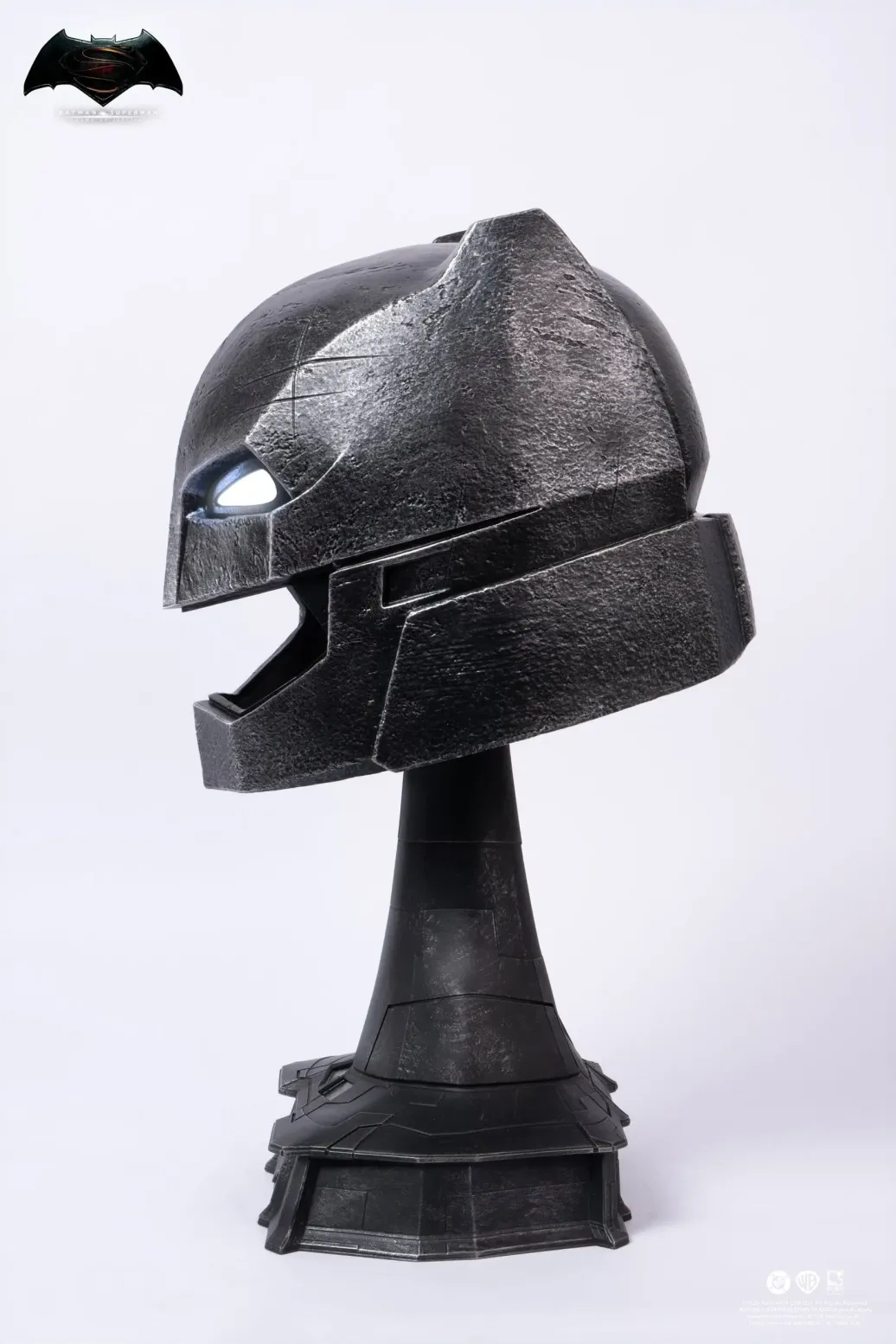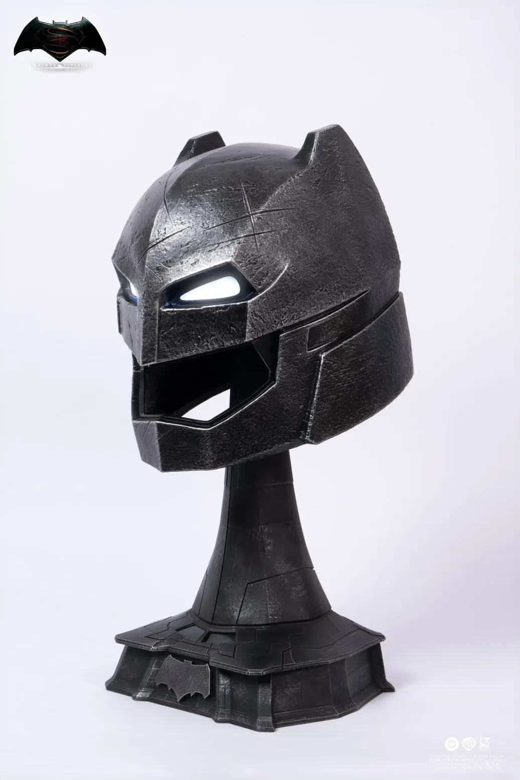 Dies ist eine 1:1-Nachbildung des gepanzerten Batman-Helms aus Batman v Superman: Dawn of Justice. Hergestellt von Pure Arts, ist dieses detaillierte Sammlerstück ein Muss für jeden Justice League-Fan.