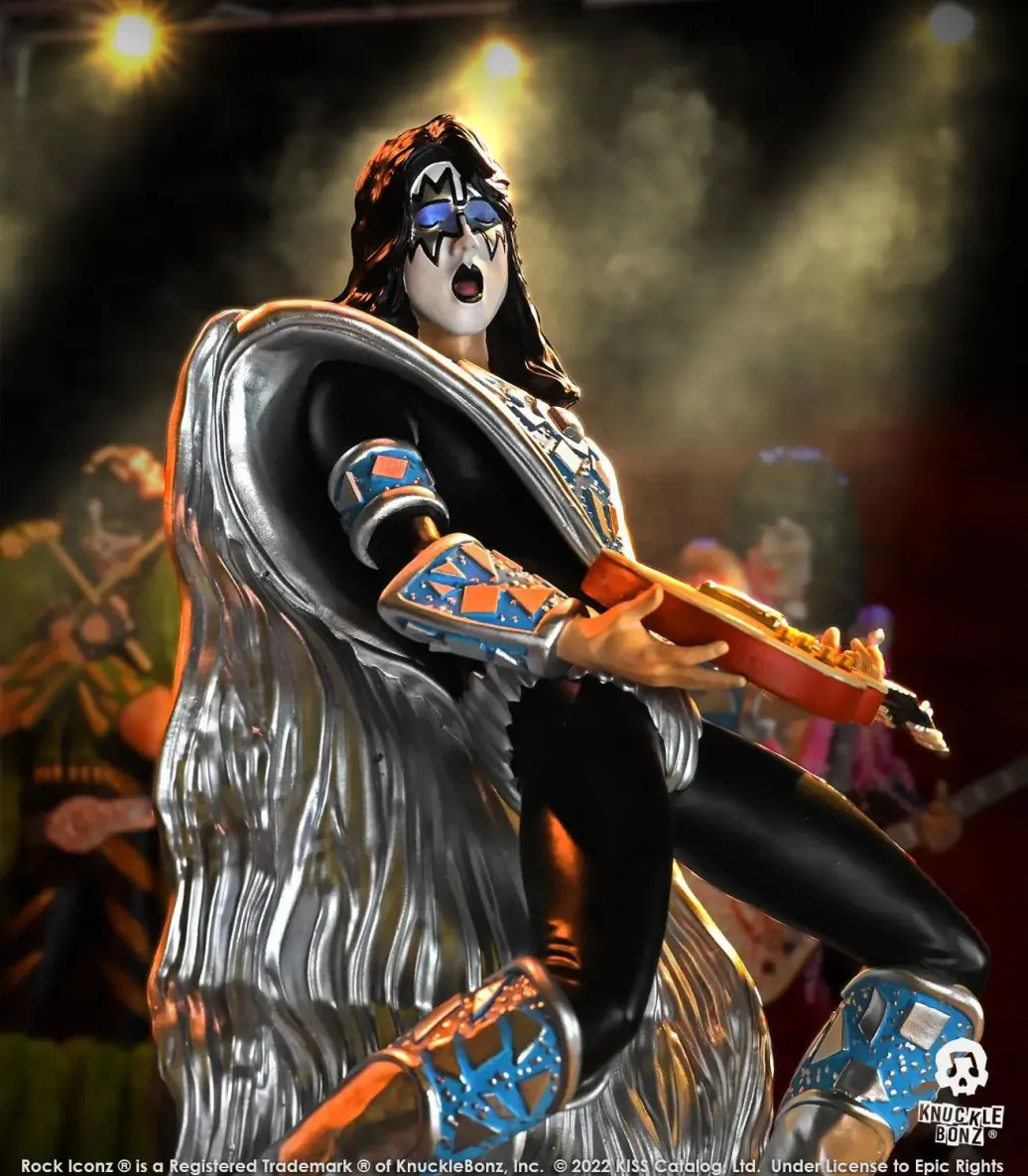 Aus KnuckleBonz' "Rock Iconz"-Reihe kommt diese detailreiche und handbemalte Statue aus hochwertigem Resin. Die im Maßstab 1/9 gehaltene Statue ist ca. 21 x 16 x 16 cm groß und auf 3000 Stück limitiert. Geliefert wird das Sammlerstück inklusive Kiss Dynasty Base und Echtheitszertifikat in einem weißen Karton.