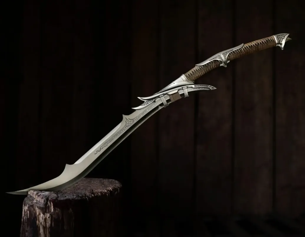 Die sehr beliebte Swords of the Ancients-Kollektion, die 1997 kreiert wurde, ist weltweit unter Sammler-Schwert-Enthusiasten, die nur feinste Designs und höchste Qualität wünschen, legendär geworden. Dieses Kit Rae Mithrodin: Dark Edition Fantasy-Schwert ist eine Sonderausgabe des beliebten Mithrodin-Schwertes aus der Swords of the Ancients-Sammlung. Das Sammel-Fantasy-Schwert hat eine 60 cm lange 420 Edelstahlklinge mit geätzten Runen und einem speziellen "dunklen Eisen-Ende". Die hochdetaillierten Metallteile aus "dunklem Eisen" sind alle nach den genauen Spezifikationen des Designers gefertigt. Der Griff ist mit echtem dunklem, braunem Leder umwickelt und verfügt über einen panzerbrechenden Knauf. Dieses Schwert enthält ein Echtheitszertifikat und einen Fantasy-Kunstdruck von Kit Rae.