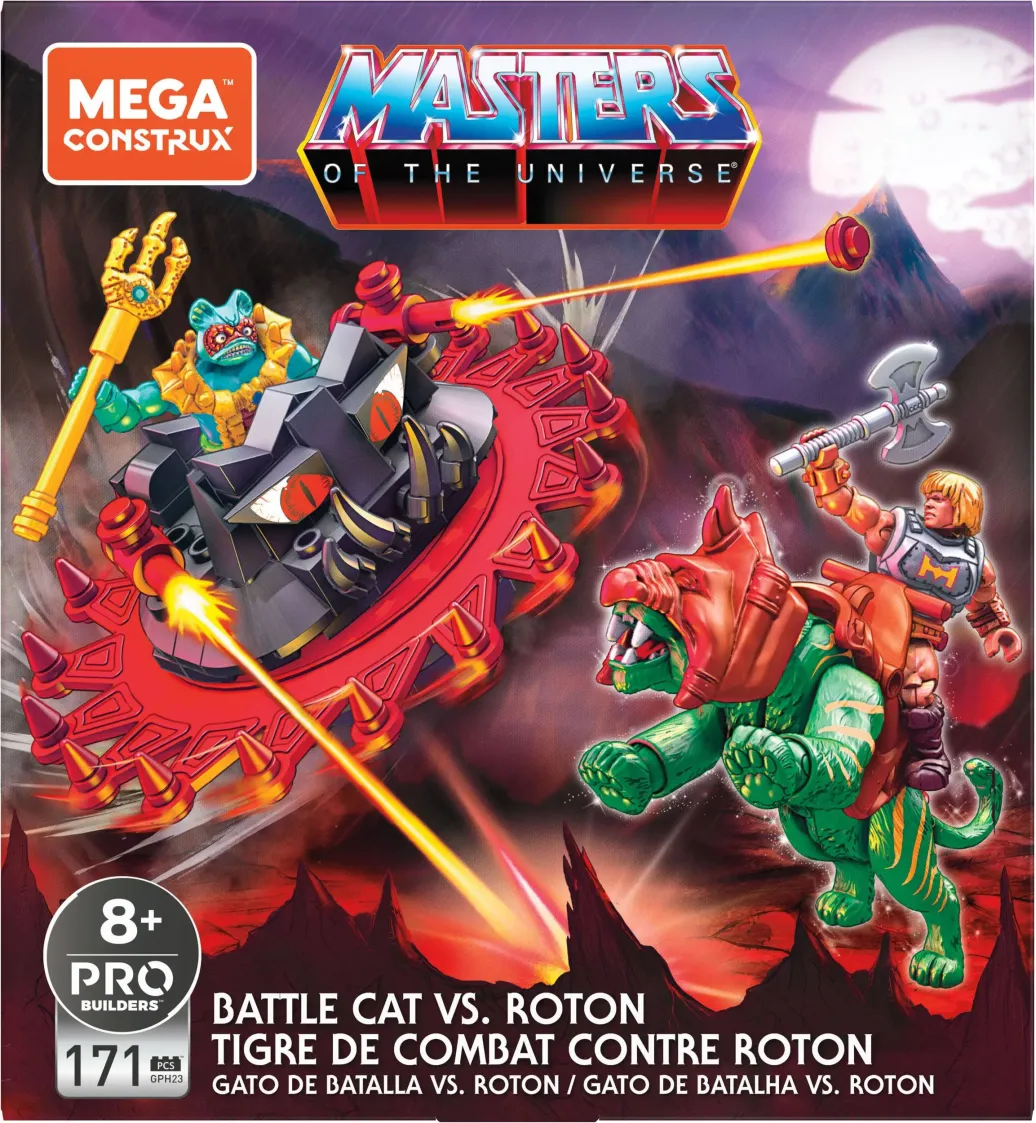 Der Roton zum Zusammenbauen verschlingt alles, was ihm in den Weg kommt - aber kann er es mit der mächtigen Battle Cat aufnehmen? Dieses Bauset zum Sammeln enthält außerdem 2 Mikro-Actionfiguren, He-Man und Mer-Man mit Kampfrüstung, authentischem Aussehen und je 12 Bewegungspunkten für heldenhafte Posen. Die Figuren im Roton und auf der Battle Cat anbringen und herausfinden, wer am mächtigsten ist. Perfekt für Fortgeschrittene ab 8 Jahren.