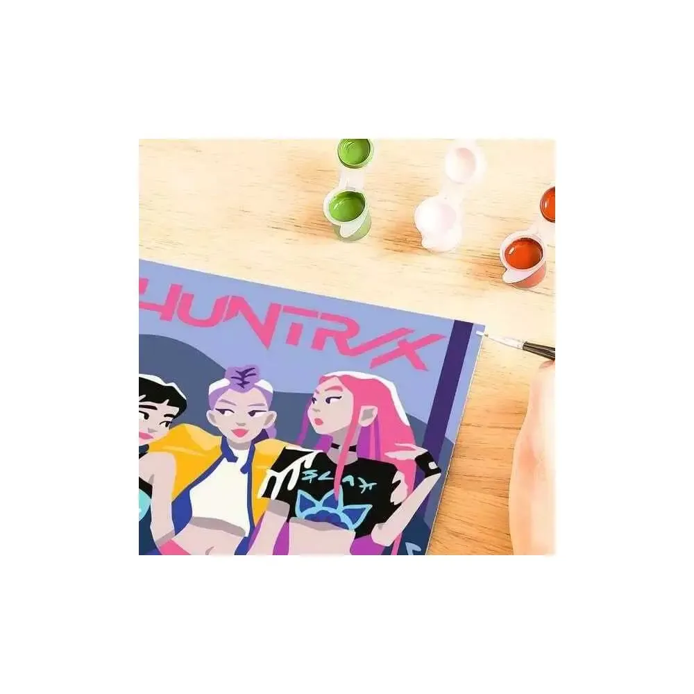 Coole Motive, leuchtende Farben und glänzender Lack für ein perfektes Finish. Das trendige Motiv Huntrix, inspiriert vom Zeichentrickfilm-Hit KPop Demon Hunters, bietet großen Malspaß für Erwachsene ab 12 Jahren. Die Motivlinien sind bereits vorgedruckt und nummeriert und müssen mit den fertig gemischten Acrylfarben ausgemalt werden. Das ist Malspaß mit Erfolgsgarantie für eine einzigartige Wanddekoration. Malen war noch nie so einfach!