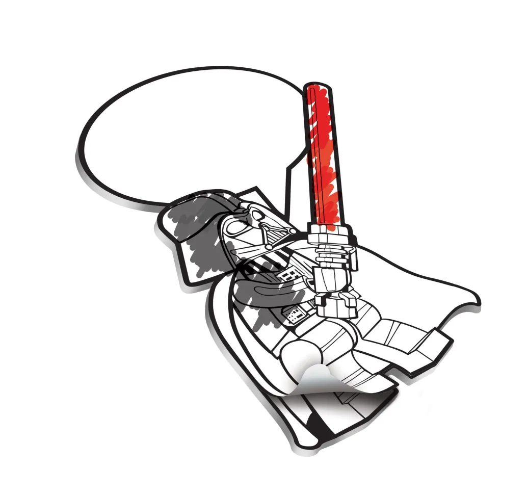 Offiziell lizenzierte Blöcke mit Klebezetteln und einem Gelstift.