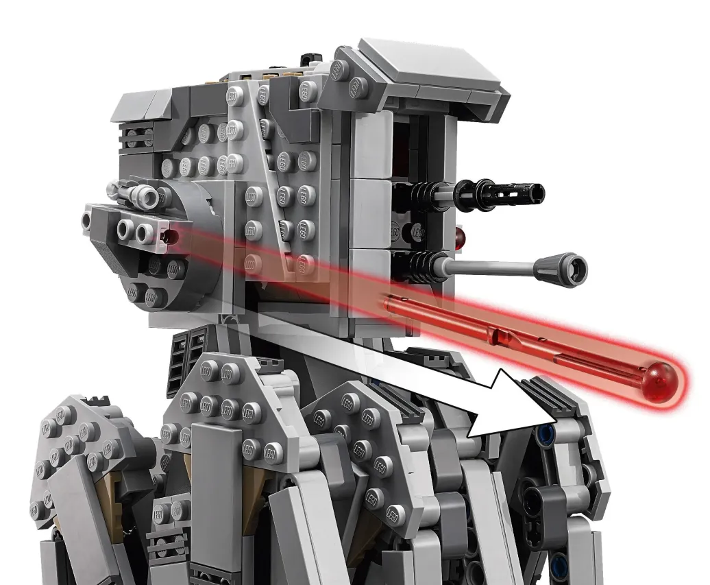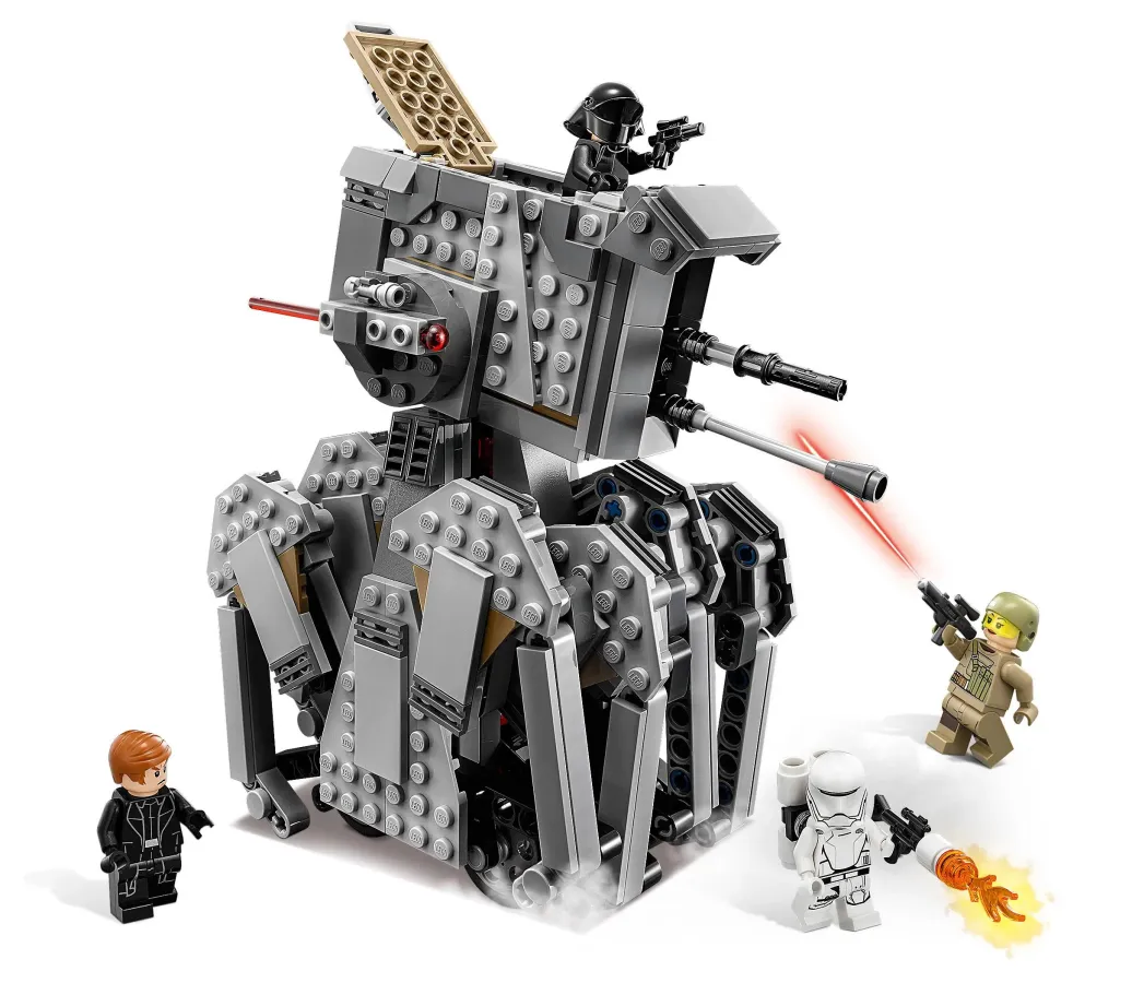 Benutze den fantastischen First Order Heavy Scout Walker, um die Rebellen aufzuspüren. Setz General Hux ins Cockpit und lass ihn seine Befehle an die Flametroopers übermitteln. Schieb den Walker an und sieh zu, wie sich die Krabbelbeine bewegen! Wenn du die Rebellen erblickst, schwenkst du die federunterstützten Shooter nach oben und machst dich auf spannende Action gefasst! - Enthält vier Minifiguren: General Hux, einen First Order Gunner, einen Resistance Trooper und einen First Order Flametrooper.