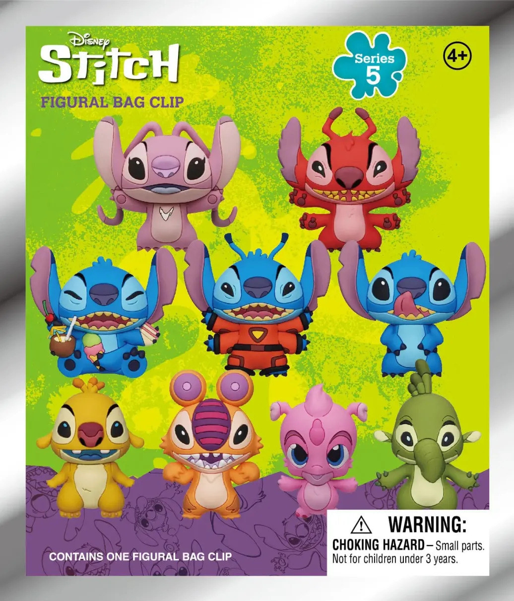 Display mit 24 Blind Bags mit je einem offiziell lizenzierten Taschenanhänger aus PVC.