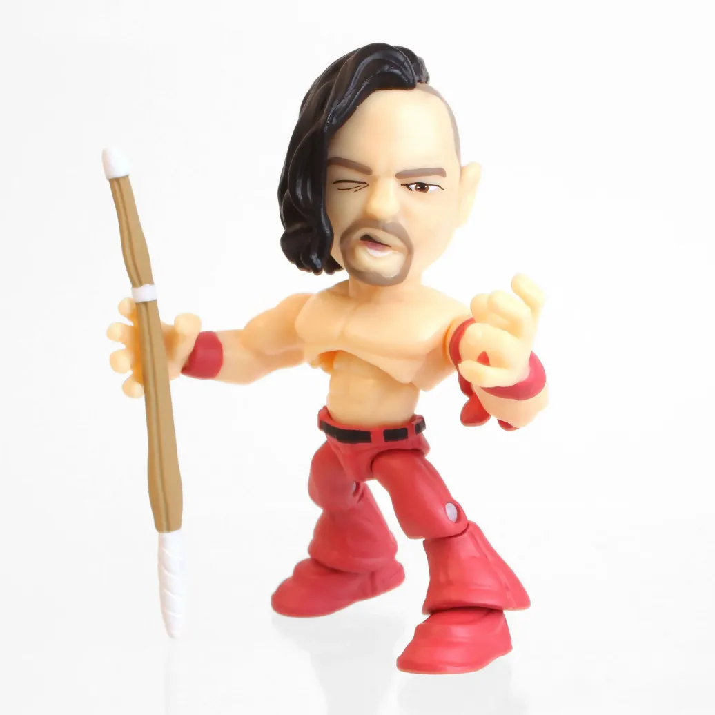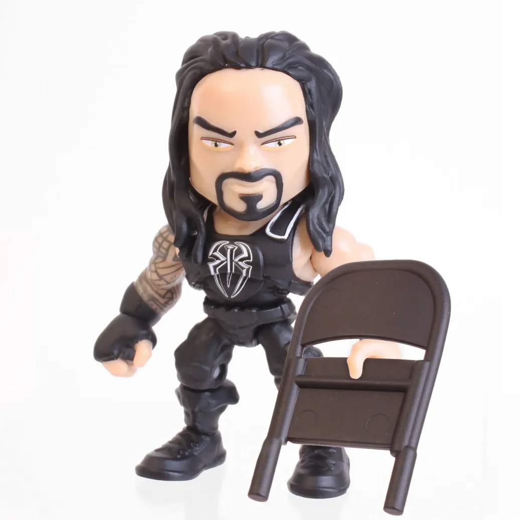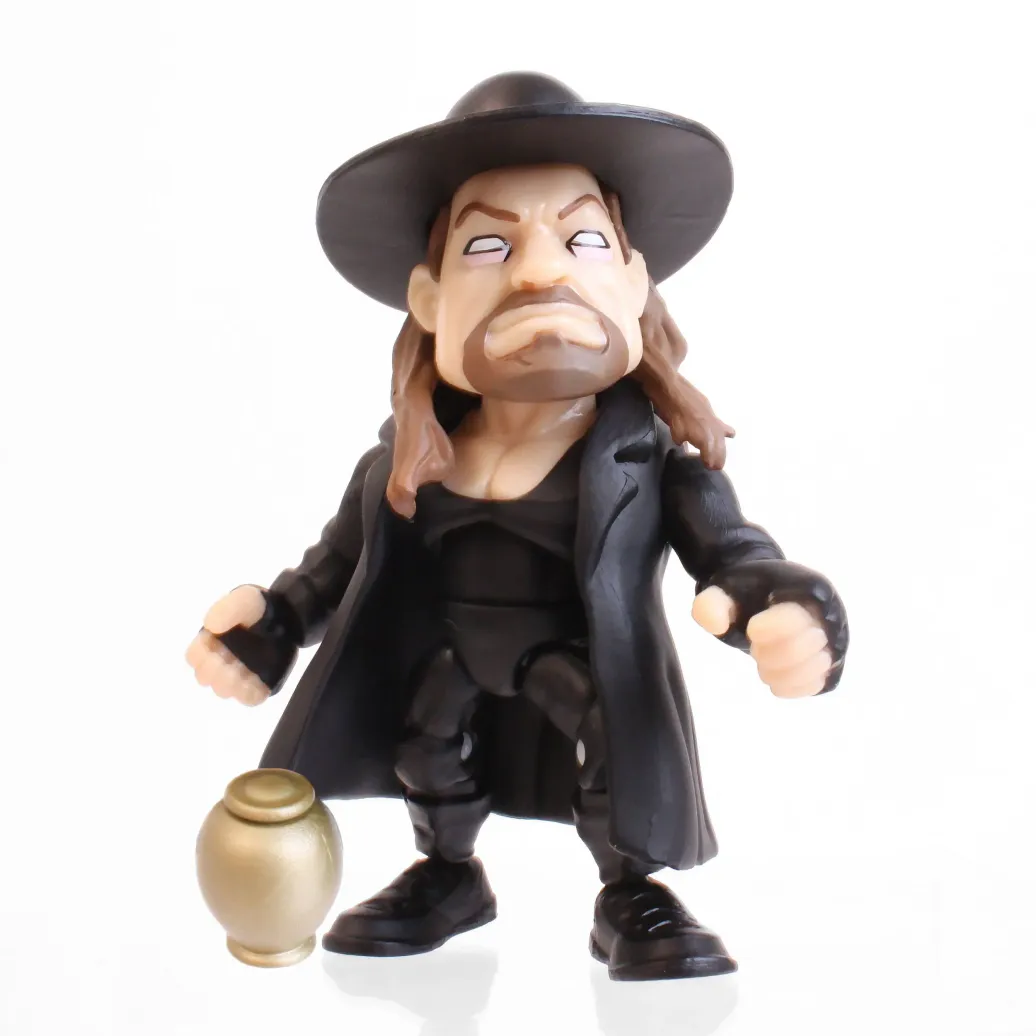 Display mit 12 beweglichen WWE Minifiguren aus Vinyl mit Zubehör. Die putzigen Figuren sind ca. 8 cm groß. 8 Figuren sind in einer Fensterbox und 4 in einer Blind-Box verpackt, man sieht also nicht bei jeder Packung, welche Figur darin steckt.