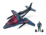 Switchblade ist ein Meister der Täuschung. Im normalen Flugmodus ist es ein dunkelblauer, pfeilschneller Düsenjäger. Doch auf Knopfdruck ändert sich alles: Die Flügel rotieren, die versteckten Rotorblätter entfalten sich und das Flugzeug transformiert sich in einen schwer bewaffneten High-Tech-Helikopter. Diese Verwandlungsfunktion ist das Herzstück des Spielzeugs und funktioniert mechanisch wie beim Original.