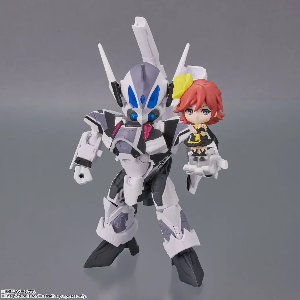 Zur Anime-Serie "Macross Delta" kommt dieses coole Set mit Actionfigur, dem dazugehörigen Fahrzeug mit Ständer und weiterem Zubehör.