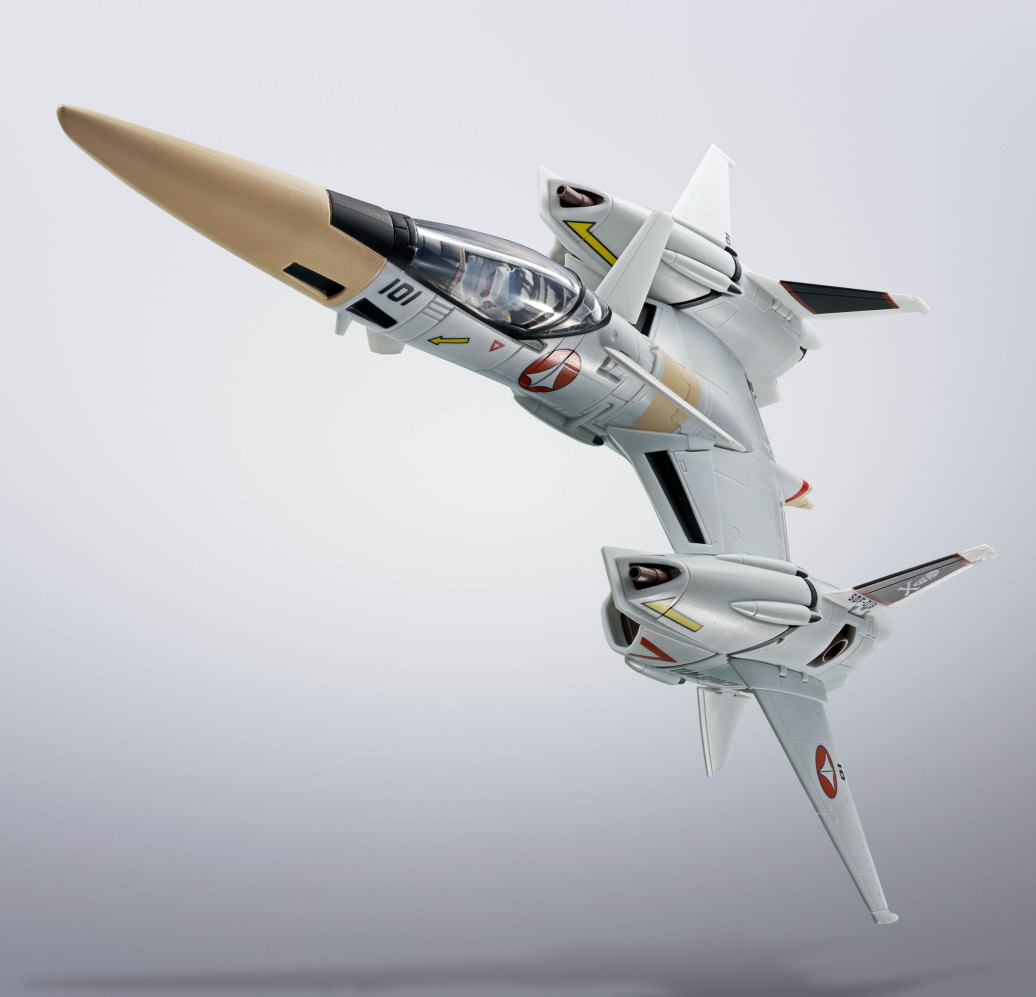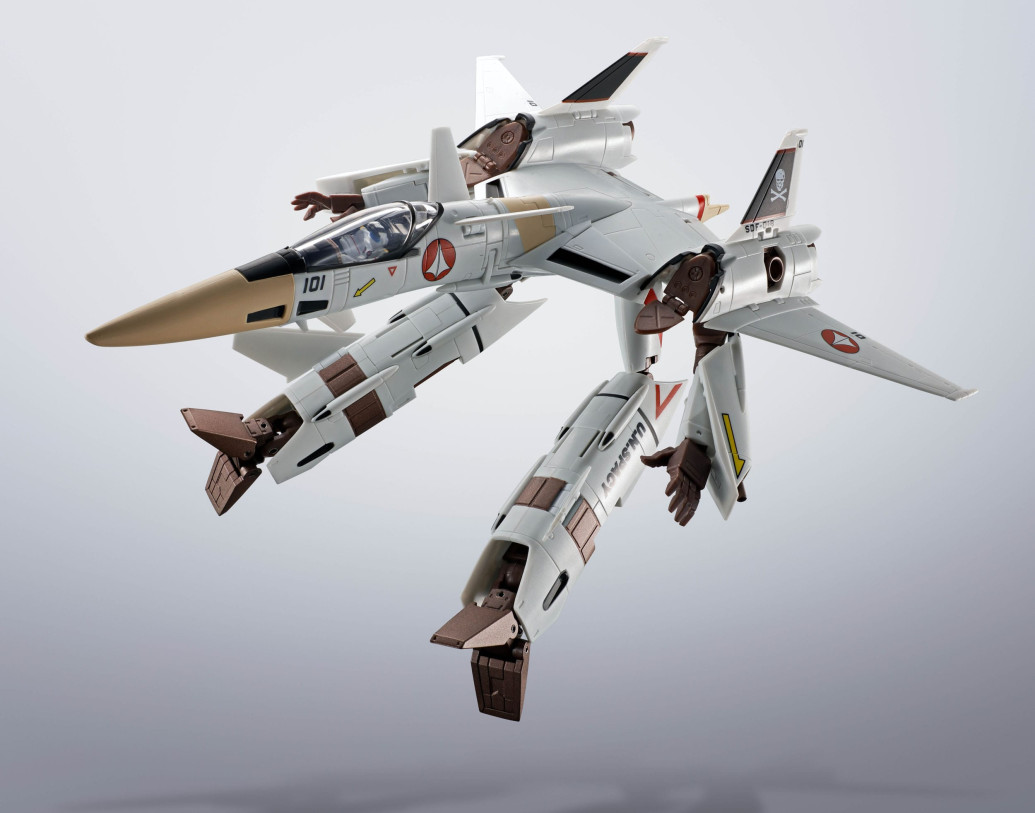 Zur Anime Serie "Macross The Super Dimension Fortress" kommt diese großartige und voll bewegliche Actionfigur aus ABS, PVC und Metall aus Tamashii Nations "Hi-Metal R"-Reihe.