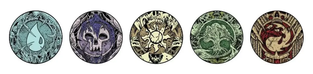 Sammeln Sie die 5 verschiedenen AR-verstärkten Pins im Stil eines Buntglasfensters. Sammeln Sie die 5 verschiedenen AR-optimierten Ansteckpins im Stil eines Buntglasfensters. Feiern Sie Ihr Lieblingsmana in wunderschöner Buntglasoptik. Diese Ansteckpins basieren auf den wunderschönen Werken von Magali Villeneuve.