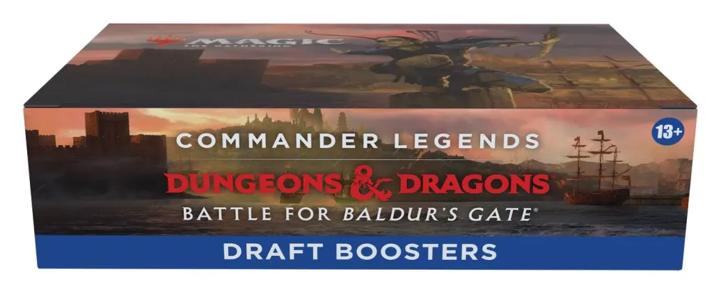 Drafte ein Commander-Deck in der Welt von Dungeons & Dragons. Jeder Commander Legends: Schlacht um Baldur's Gate Draft-Booster enthält 20 Magic-Karten und 1 Spielstein-/Werbekarte in einer Kombination aus 1-4 Karten der Seltenheit selten oder höher (2: 37 %. 3: 6 %. 4: < 1 %), 3-6 nicht ganz so häufigen und 13-15 häufigen Karten. 1 Karte beliebiger Seltenheit ist eine traditionelle Foilkarte. Sagenhaft seltener Foil-Planeswalker ohne Rand in < 1 % der Booster.