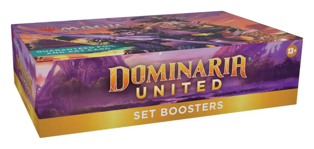 Ein Dominarias Bund Set-Booster-Display enthält 30 Dominarias Bund Set-Booster und 1 traditionelle Box-Topper-Foilkarte.