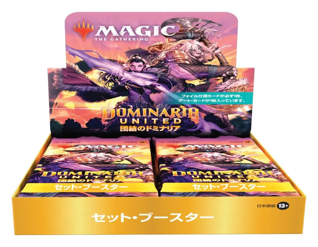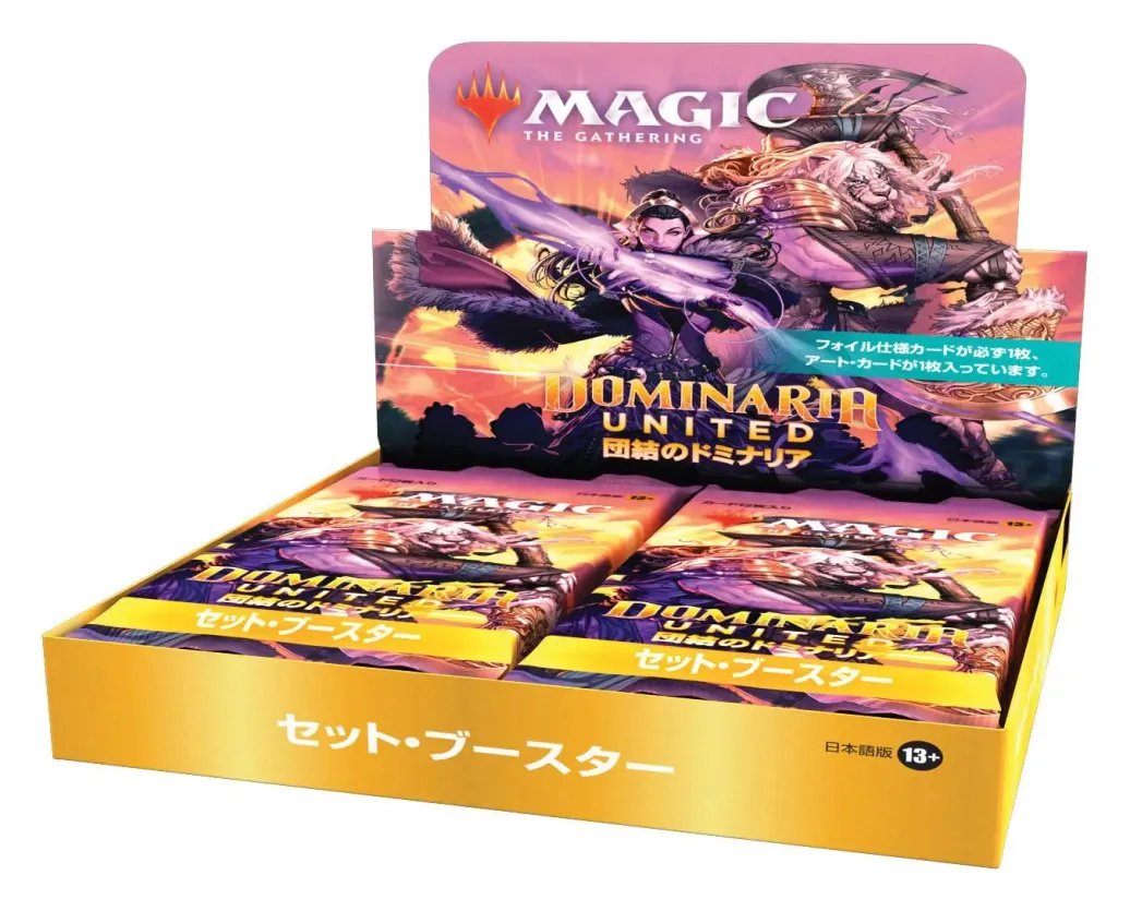 Ein Dominarias Bund Set-Booster-Display enthält 30 Dominarias Bund Set-Booster und 1 traditionelle Box-Topper-Foilkarte.