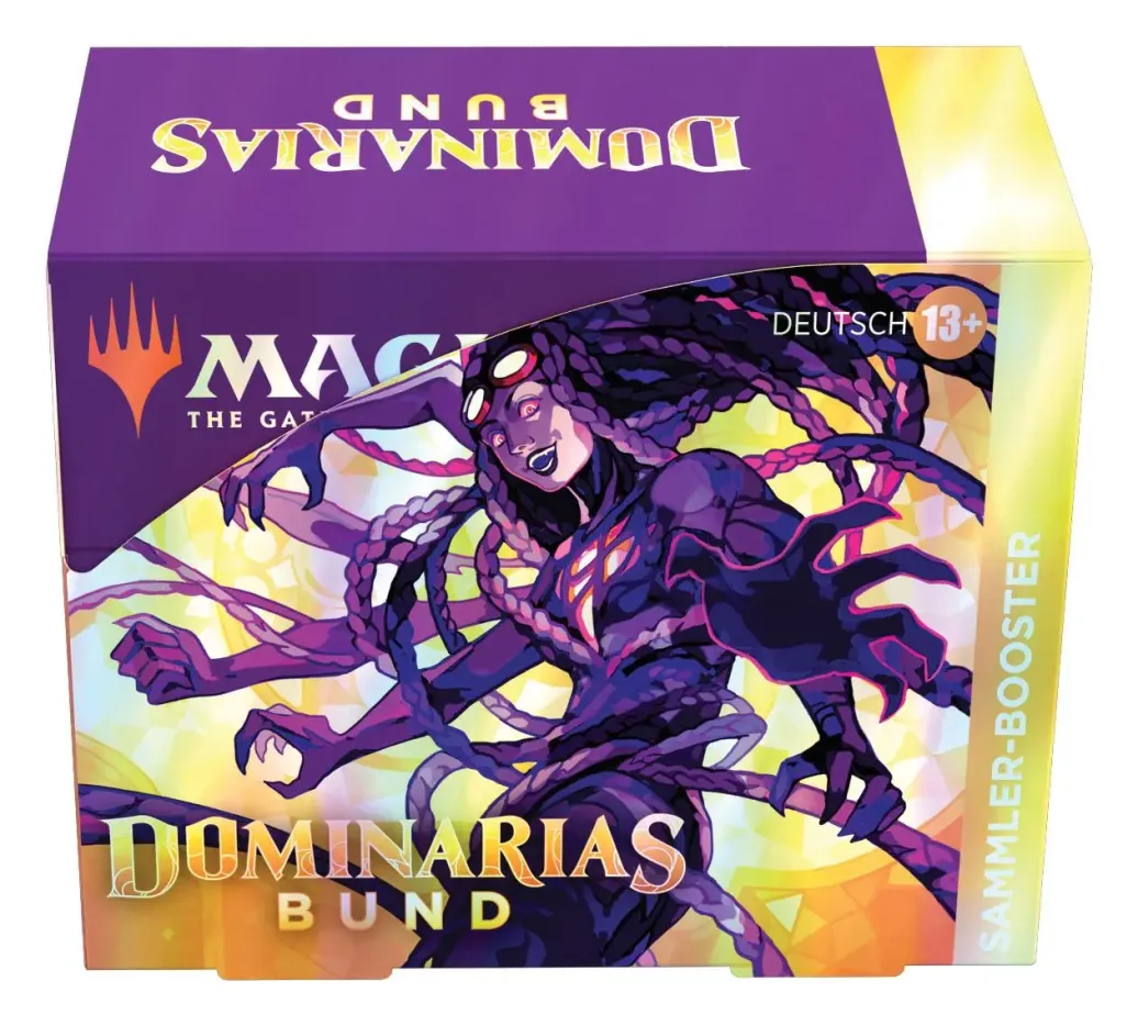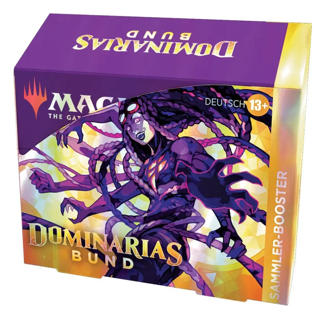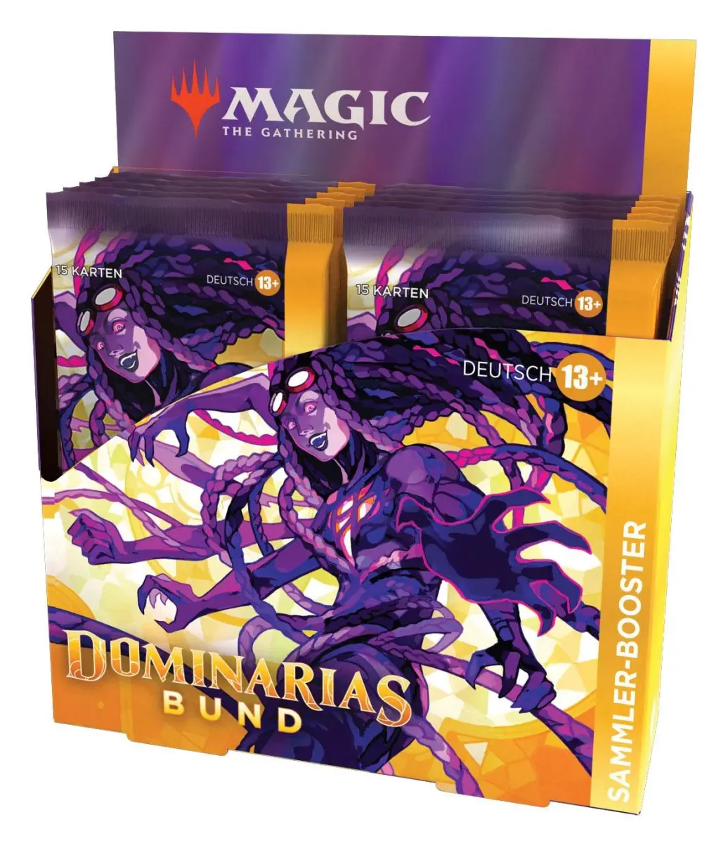 Ein Dominarias Bund Sammler-Booster-Display enthält 12 Dominarias Bund Sammler-Booster und 1 traditionelle Box-Topper-Foilkarte.
