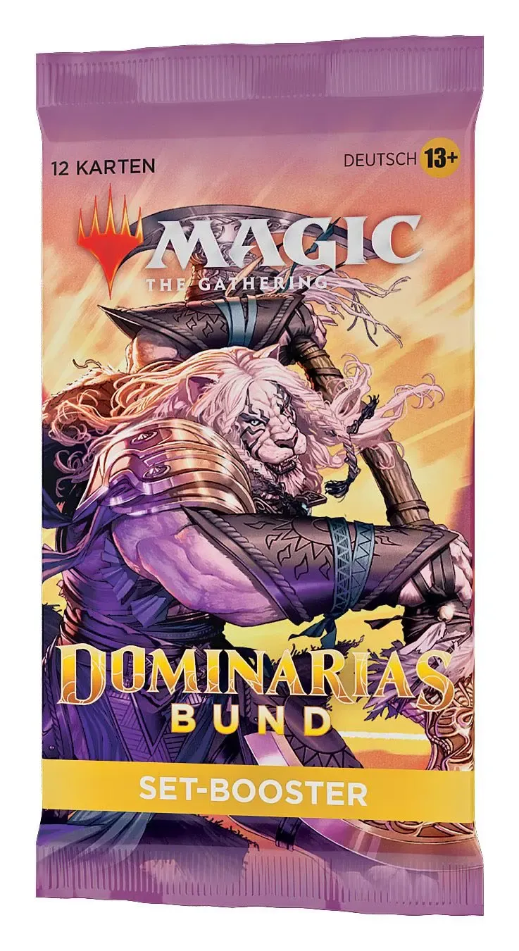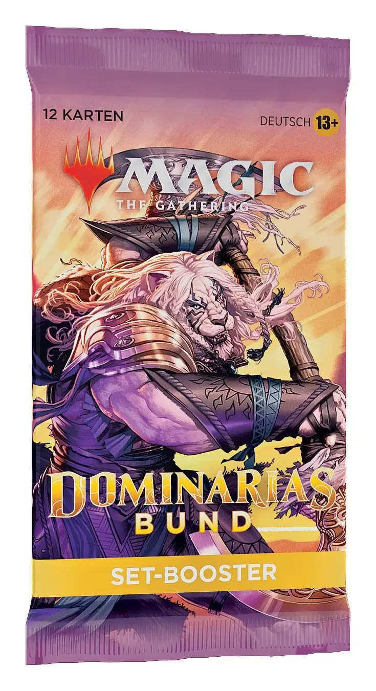 Ein Dominarias Bund Set-Booster-Display enthält 30 Dominarias Bund Set-Booster und 1 traditionelle Box-Topper-Foilkarte.