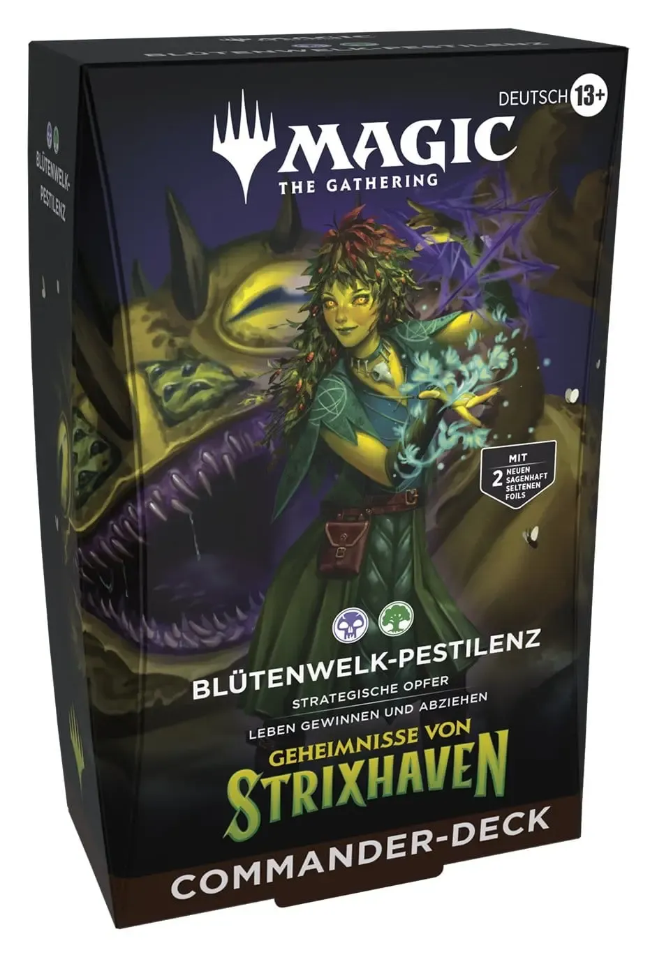 Dieses Bundle enthält alle 5 Magic: The Gathering Secrets of Strixhaven-Decks: Silverquill Influence, Prismari Artistry, Witherbloom Pestilence, Lorehold Spirit, Quandrix Unlimited. Jedes enthält 1 Deck mit 100 Magic-Karten (2 traditionelle Foil-Karten ohne Rand, 98 reguläre Karten), 10 doppelseitige Token-Karten, 1 Deckbox (für 100 Karten mit Hüllen), 1 Strategiehandbuch und 1 Referenzkarte.