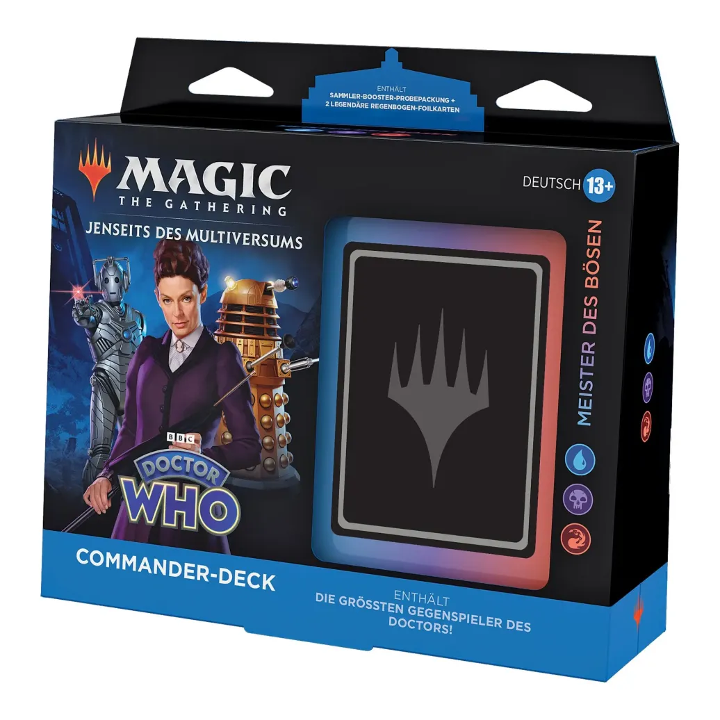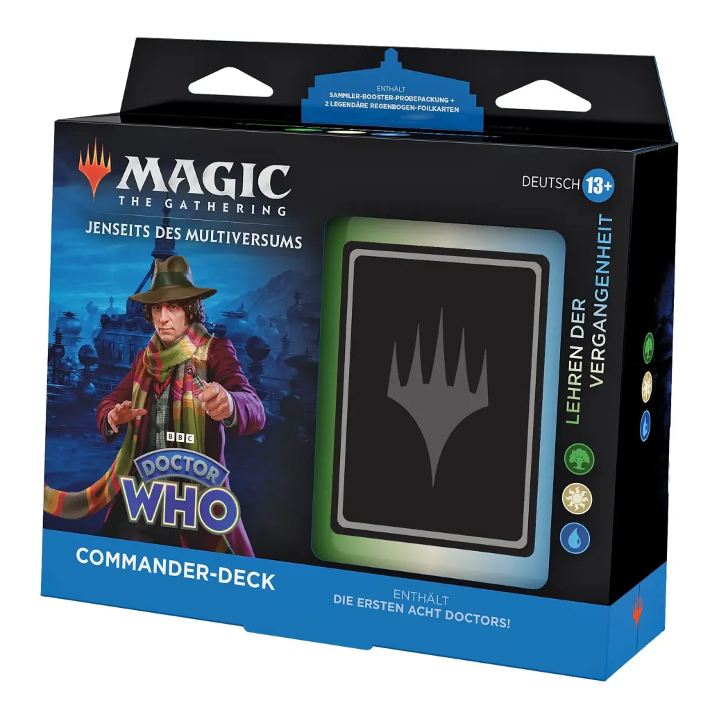 In Commander kommen vier Spieler zusammen, um ihre Stärke und Strategie unter Beweis zu stellen, wobei ein Spieler am Ende die Nase vorn hat. Jedes spielfertige Magic: The Gathering Jenseits des Multiversums: Doctor Who™ Commander-Deck mit 100 Karten macht es Commander-Fans in Ihrem Store leicht, sich ein Deck zu schnappen und sofort zu spielen.
